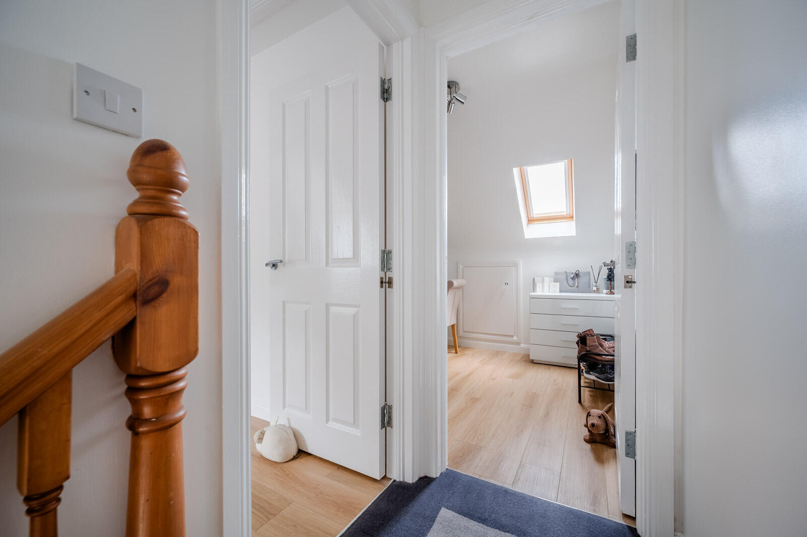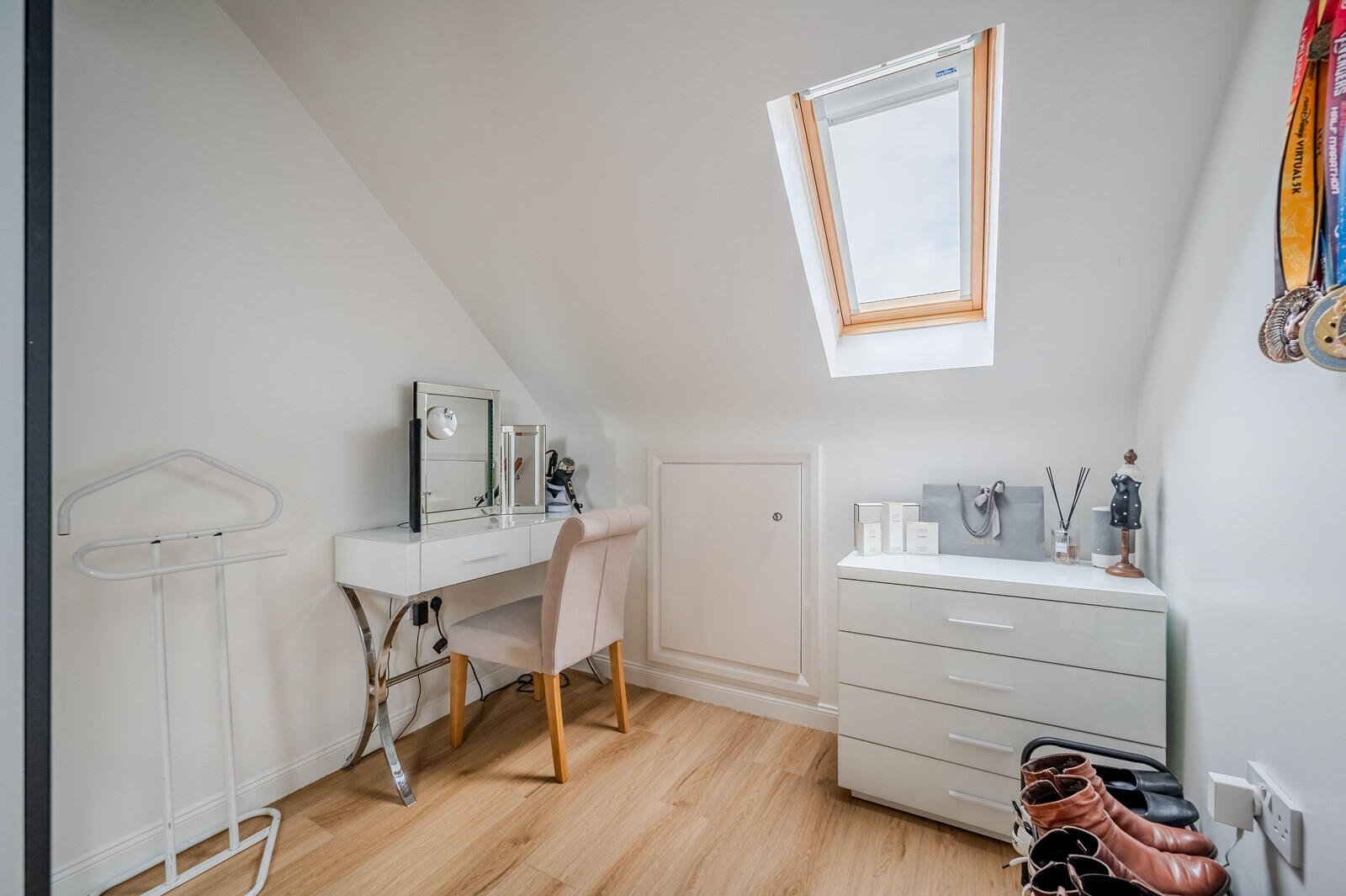 2.74m x 2.11m (9'0 x 6'11) - With oak laminate wooden flooring, Velux window with fitted blind, mature outlook with views extending across Bangor to Scotland a clear day, storage into eaves.