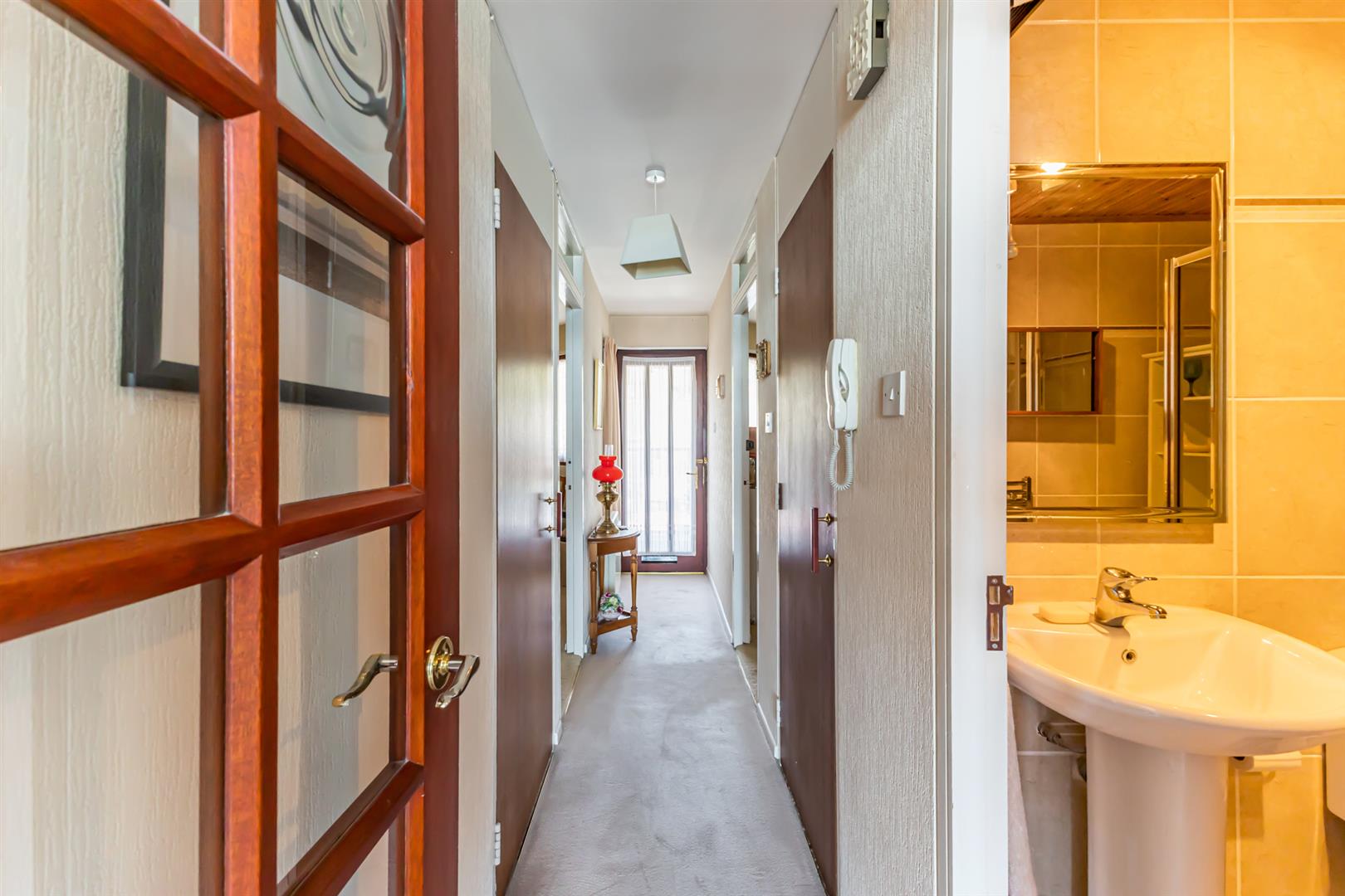 Cloakroom with storage, shelved airing cupboard, telecom entry system