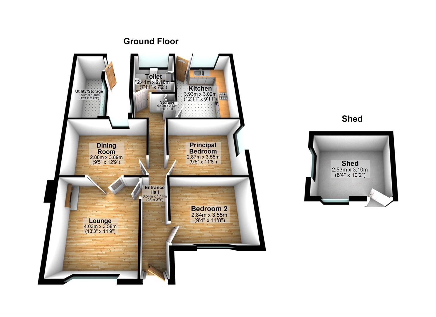 3.89m x 2.87m (12'9 x 9'5) - With outlook to rear garden.