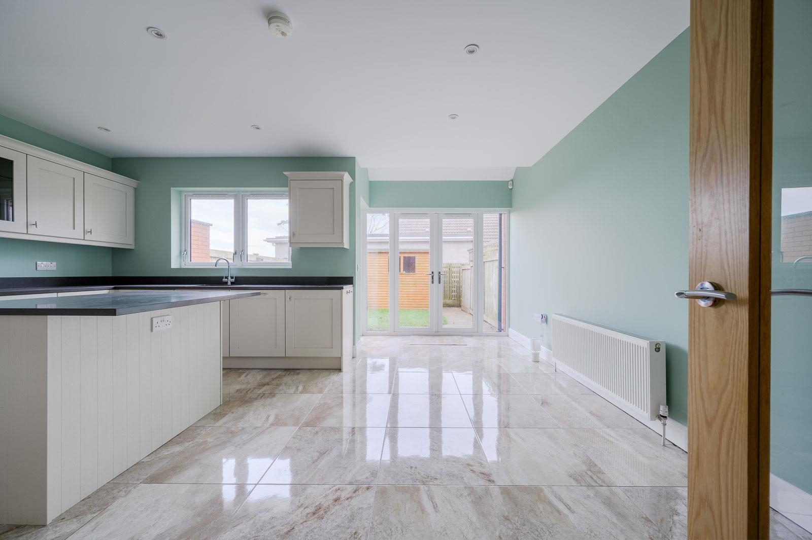 •Contemporary Fitted Kitchen with a Range of Integrated Appliances and Open to Dining and Living with Patio Doors to Rear Garden