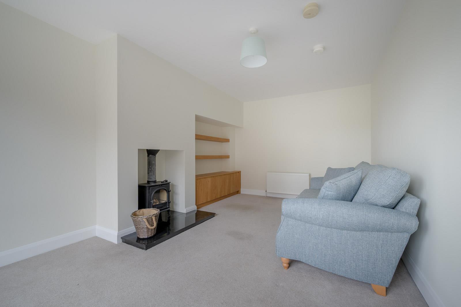 (5.49m x 3.45m) - With outlook to front, central feature wood burning stove with granite hearth, built-in shelving units.