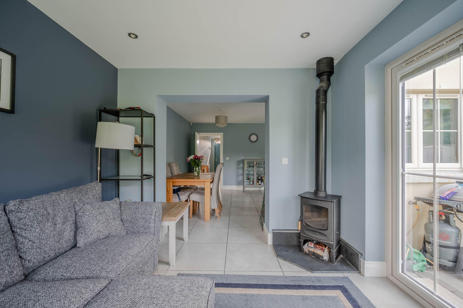 •Open-plan kitchen/dining leading to a family room with wood-burning stove