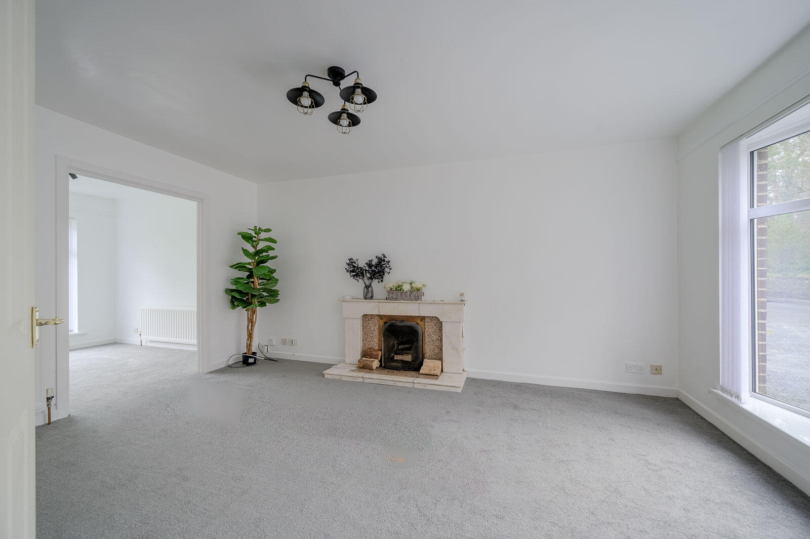 4.83m x 3.48m (15'10 x 11'5) - With outlook to front, central open fire with granite hearth, surround and mantel, double doors leading through to dining room.