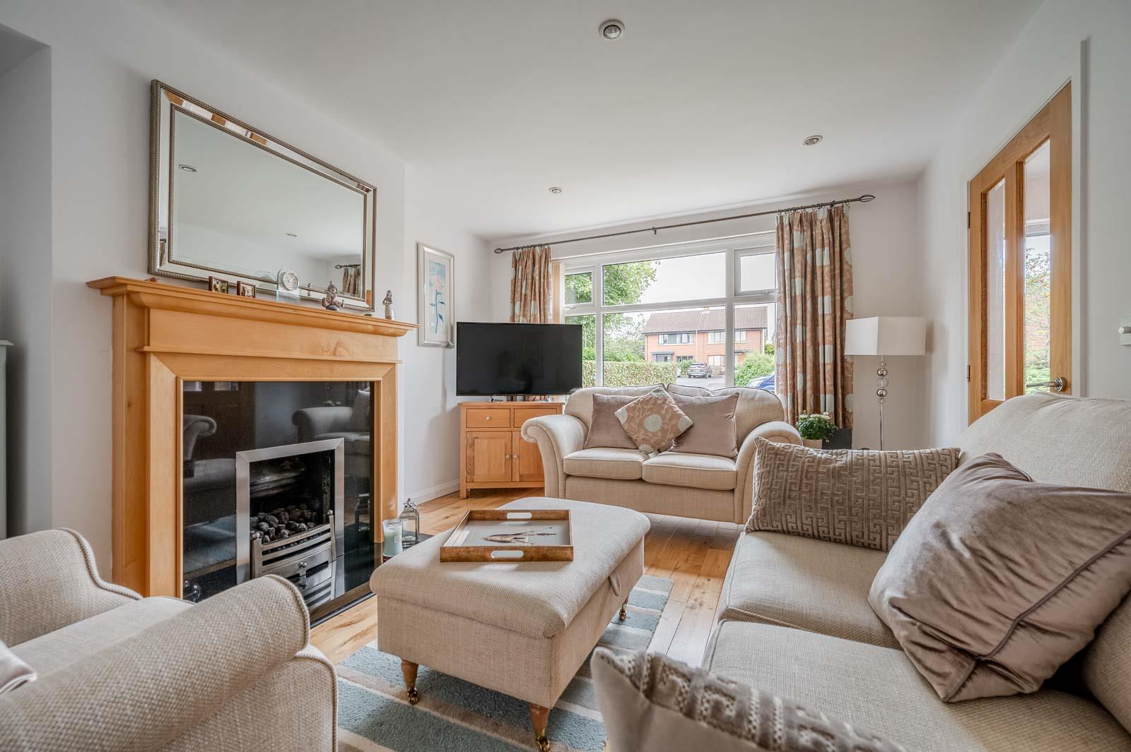 •Living Room With Laminate Oak Flooring and Feature Gas Fire