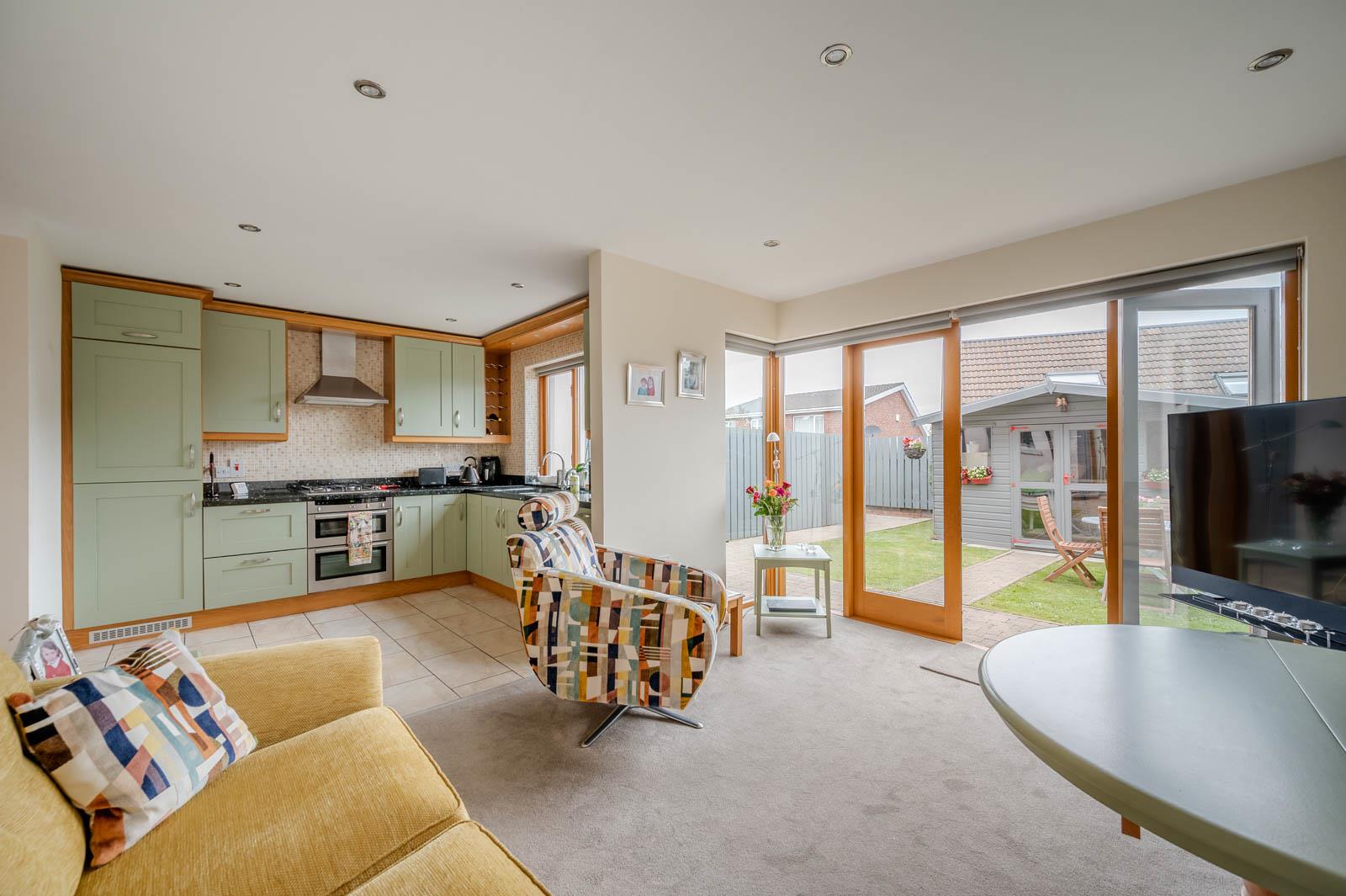 •Open Plan Bespoke Kitchen With Integrated Appliances and Sitting Area