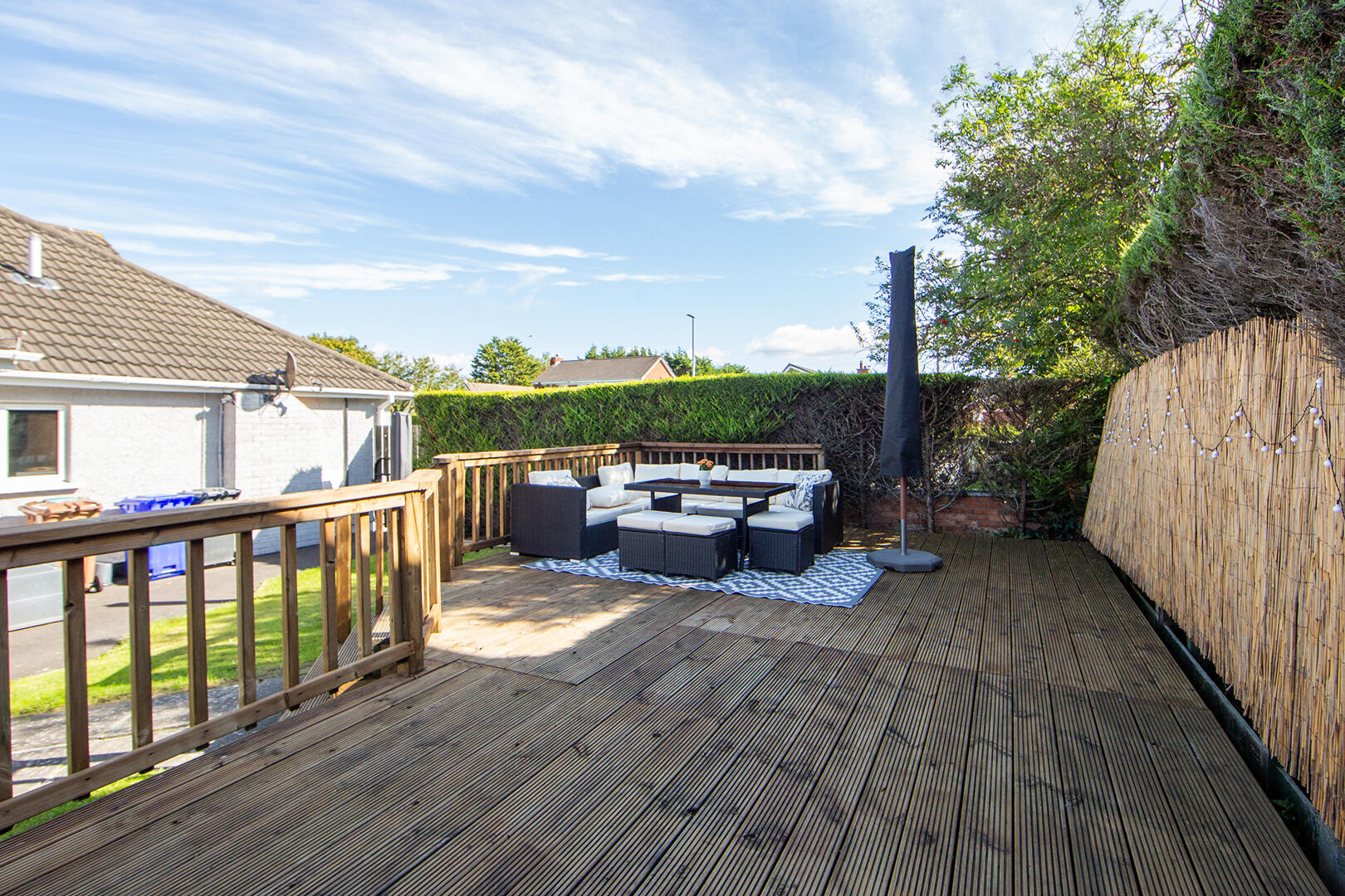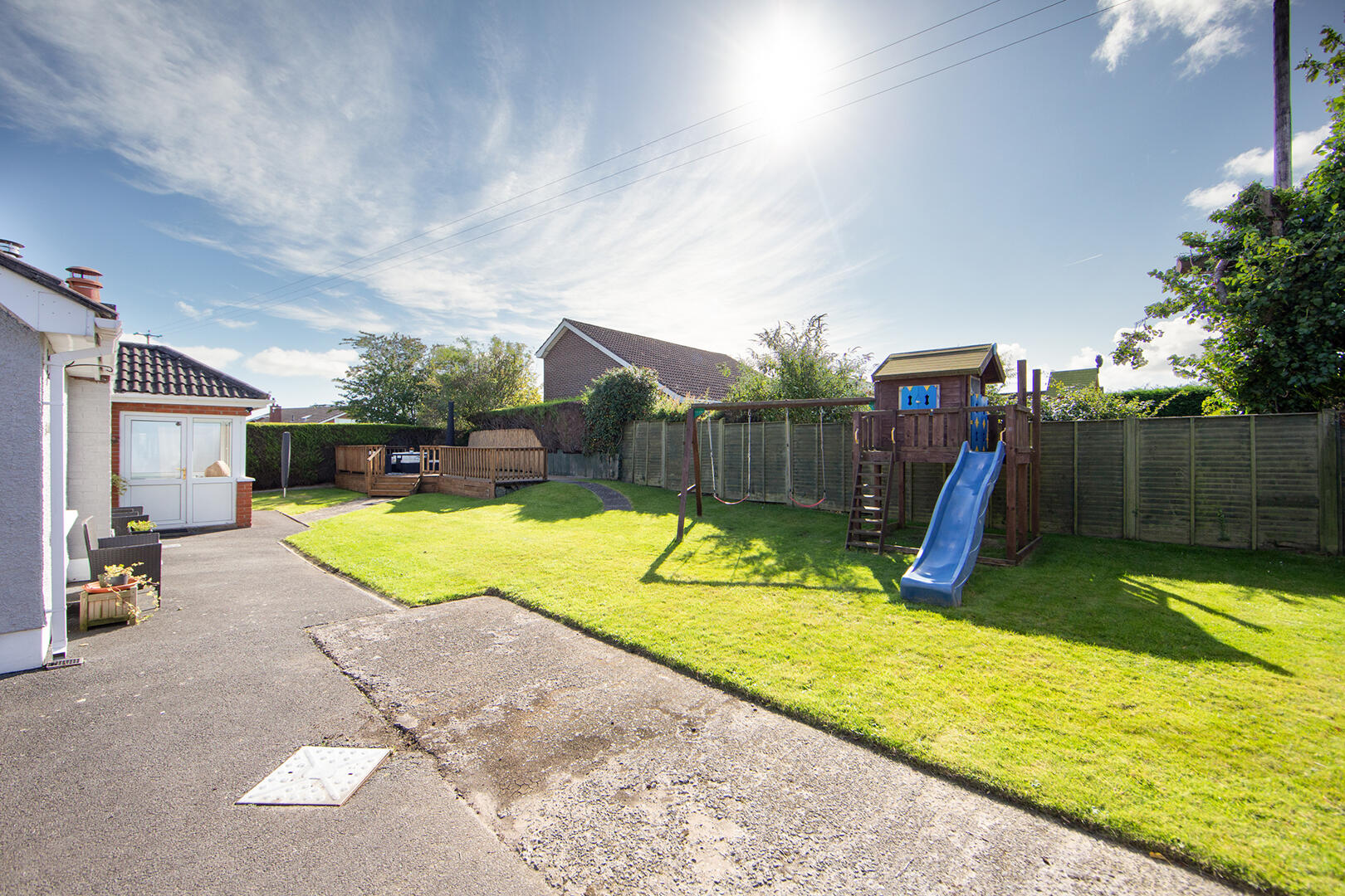 •Outstanding Fully Enclosed Rear and Side Gardens with Lawns, Extensive Timber Decked Terrace and Extensive Covered Entertaining Space