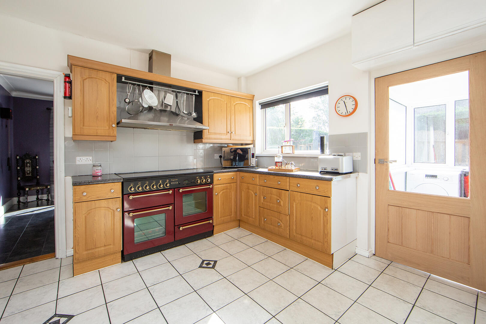 Plumbed for washing machine, space for tumble dryer, fully tiled floor, uPVC double glazed door to outside