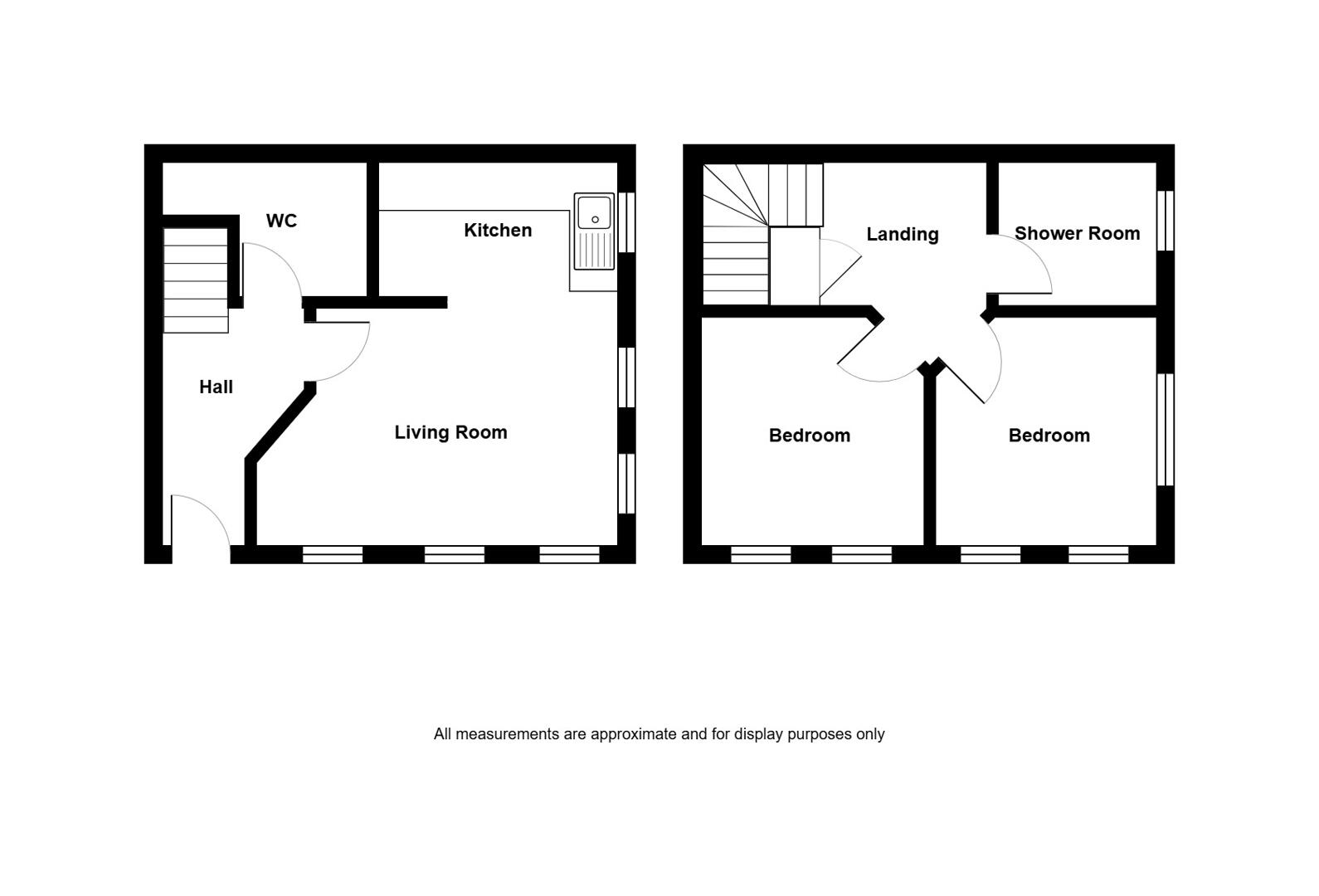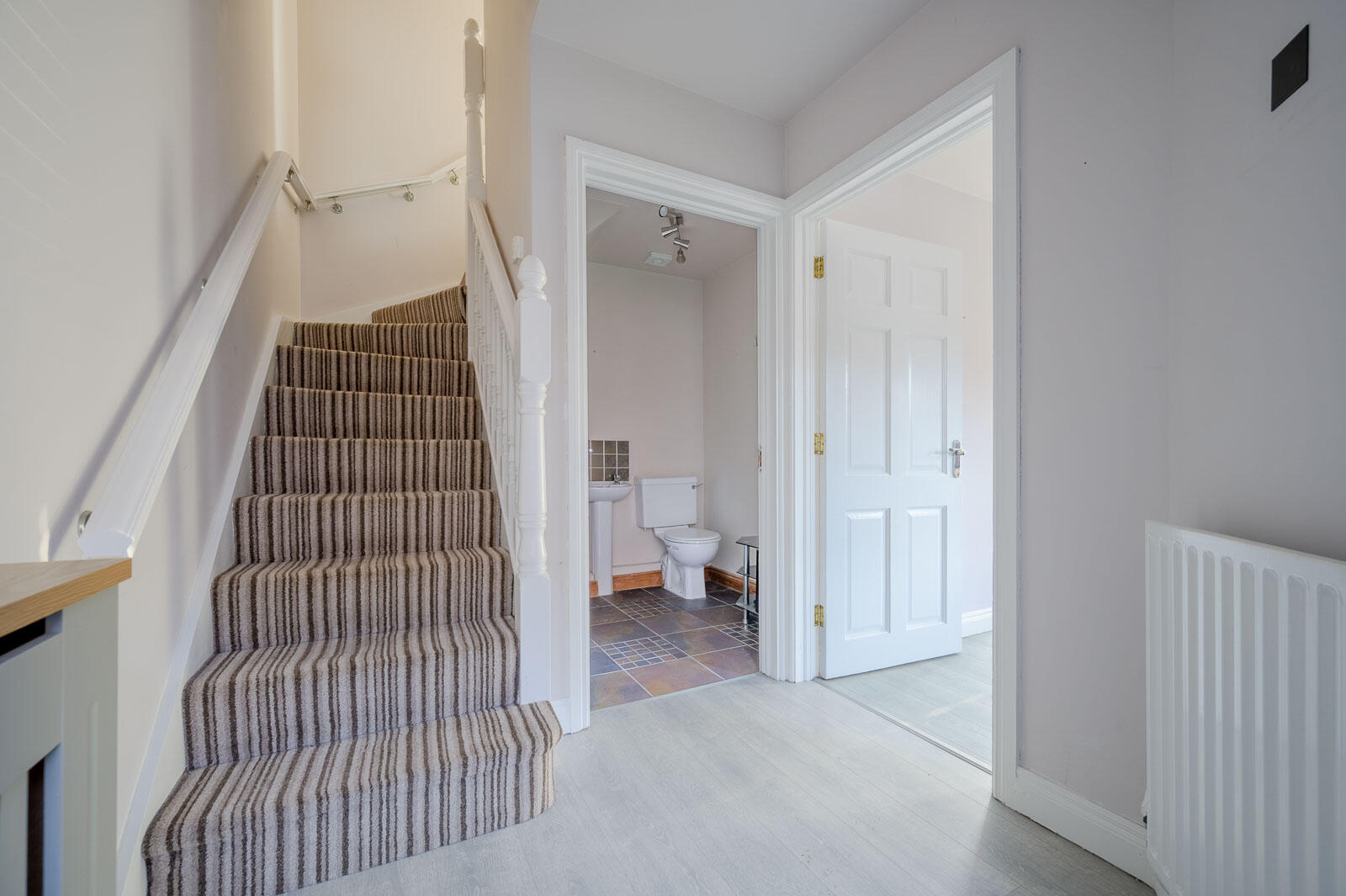 () - Two piece white suite comprising low flush WC, pedestal wash hand basin, tiled splashback, plumbed for washing machine, fully tiled floor, extractor fan.