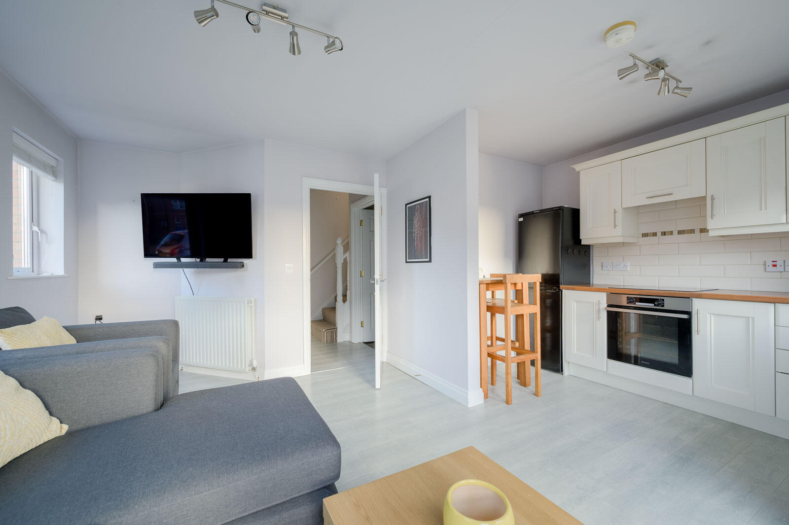 OPEN PLAN LIVING ROOM TO MODERN FITTED KITCHEN: