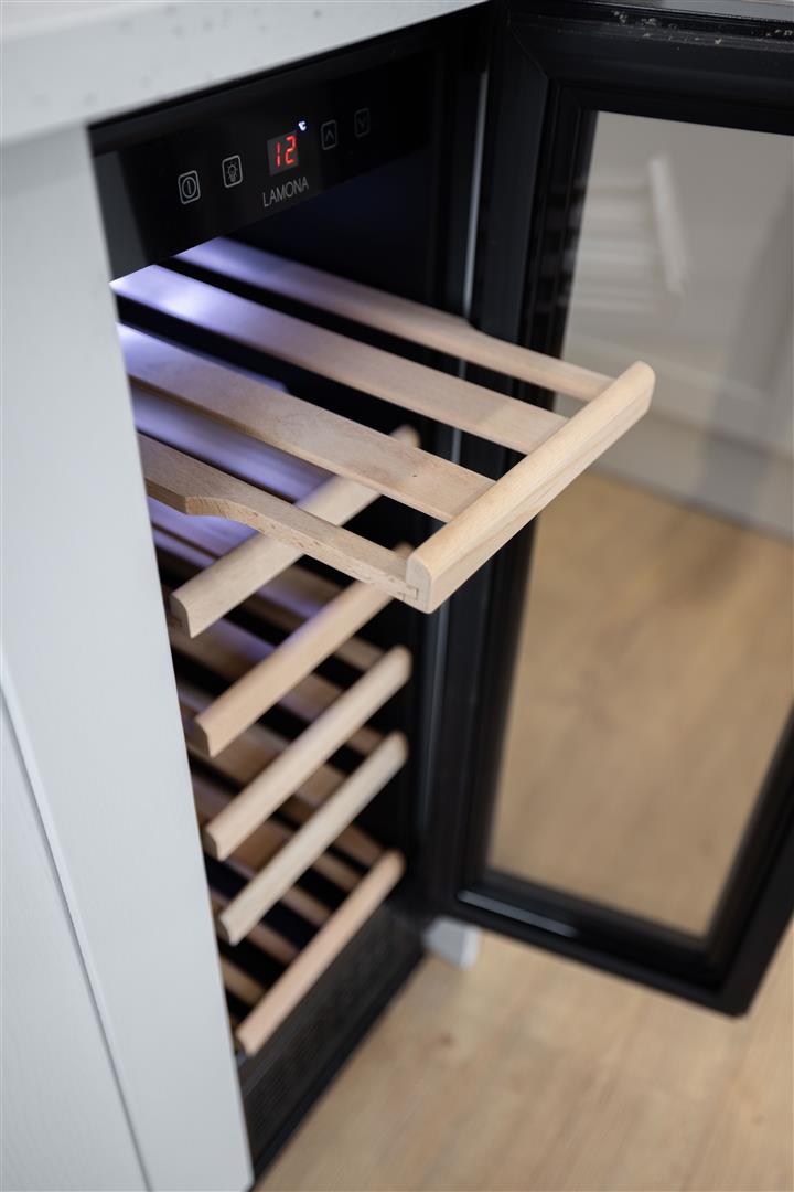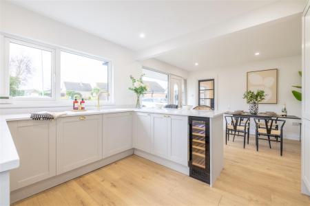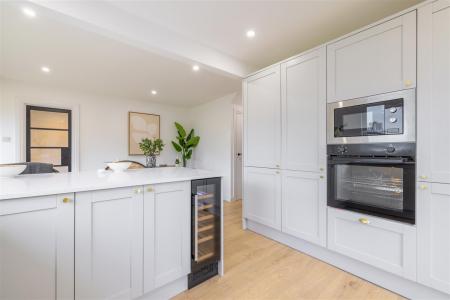 .Superb Brand New Modern Fitted Kitchen with Range of Integrated Appliances to Include Wine Cooler, Open Plan to Casual Dining Area