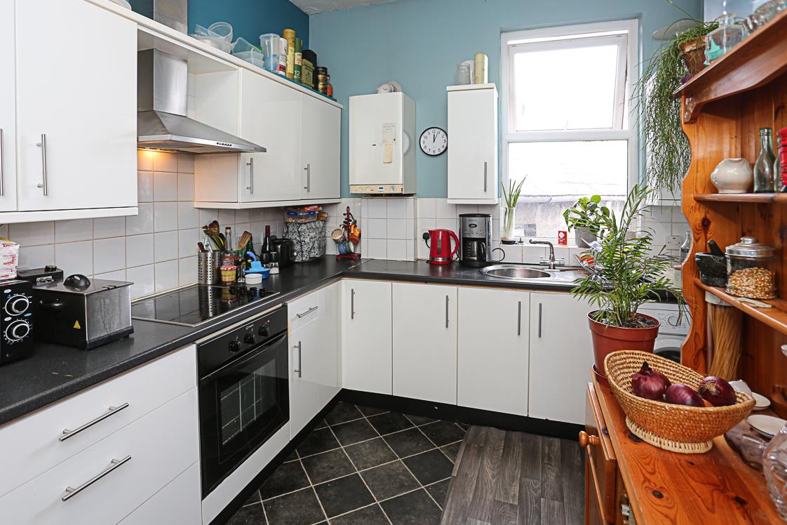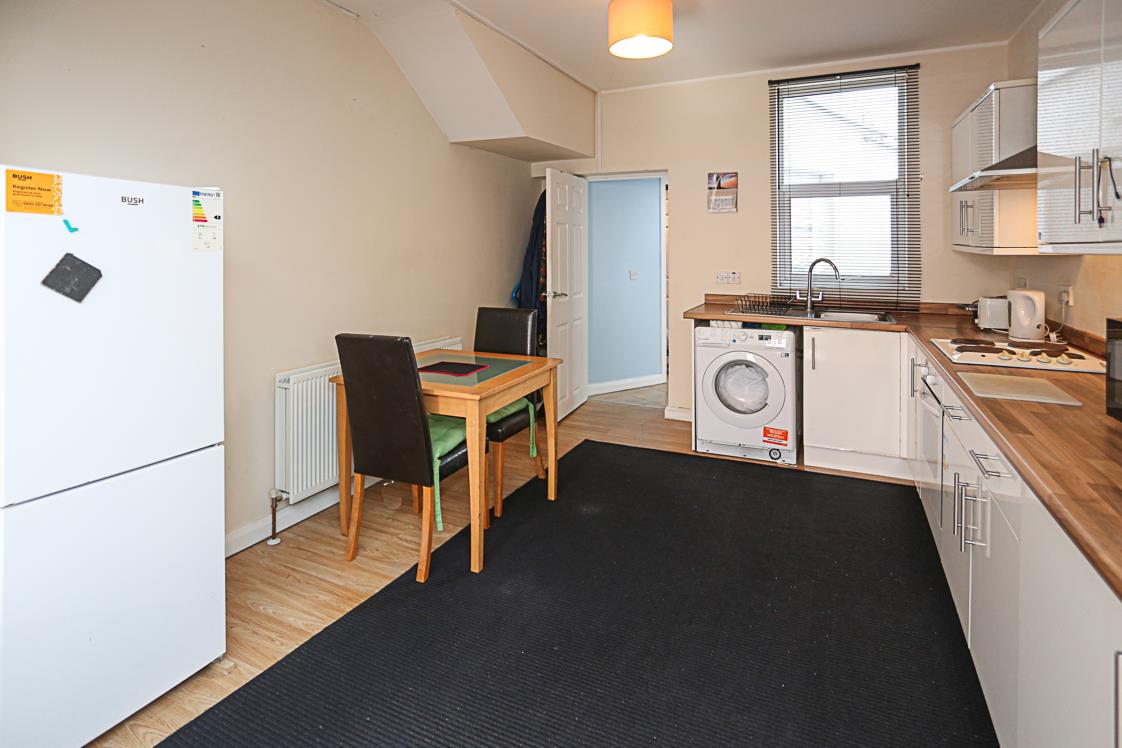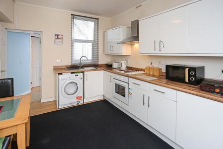 (3.86m x 3.3m) - Range of high and low level units, laminate wood effect work surface, integrated oven, four ring hob, stainless steel extractor, stainless steel sink and drainer with chrome mixer tap, space for washing machine, outlook to rear courtyard and ample space for dining.