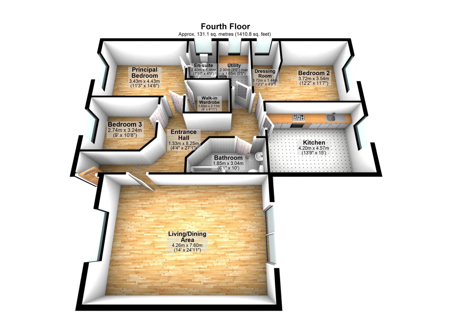 • Principal Bedroom Suite Features Walk-in Wardrobe and a Modern En-Suite Shower Room.
