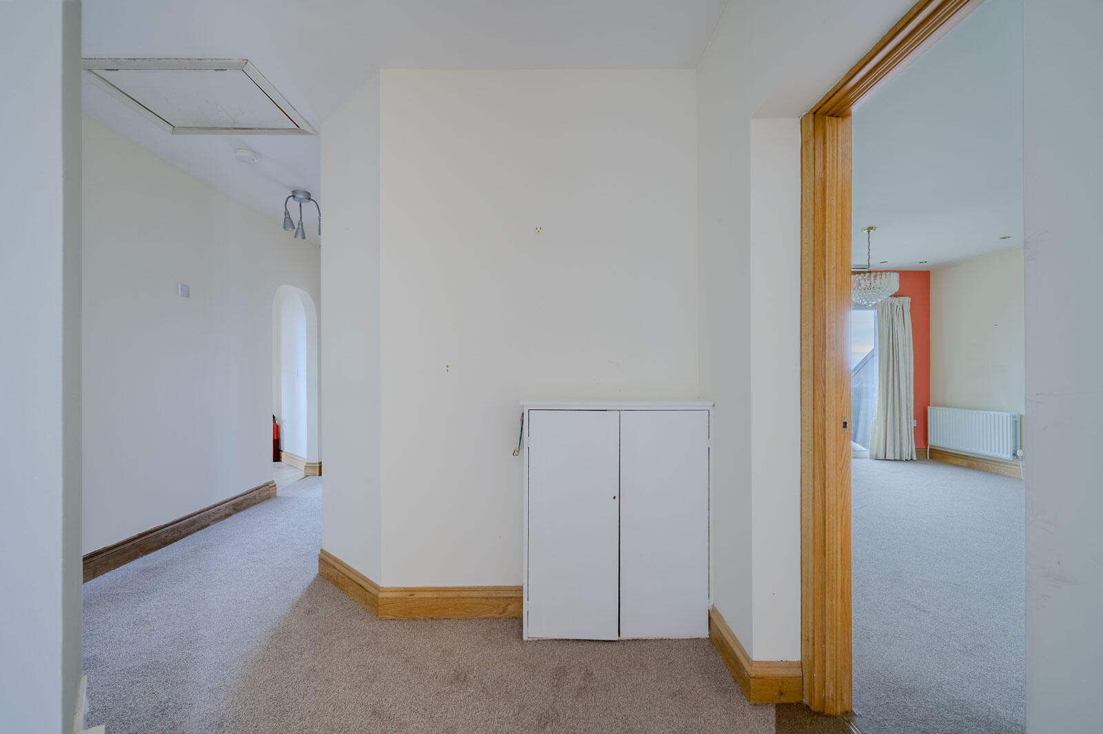 Number 16 hardwood front door with double glazed inset leading to a Generous reception hall with access hatch to roofspace.