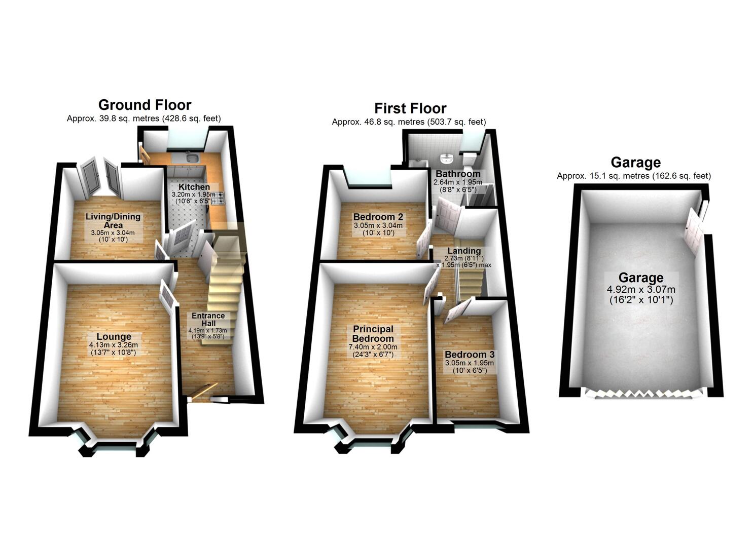 •Three well-proportioned bedrooms offering flexibility for family life or home working