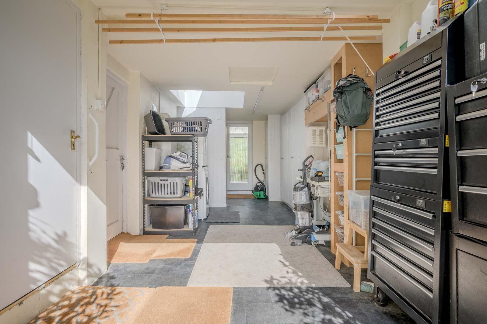 With Velux window, roller shutter door, range of built-in cupboard space, plumbed for utilities.