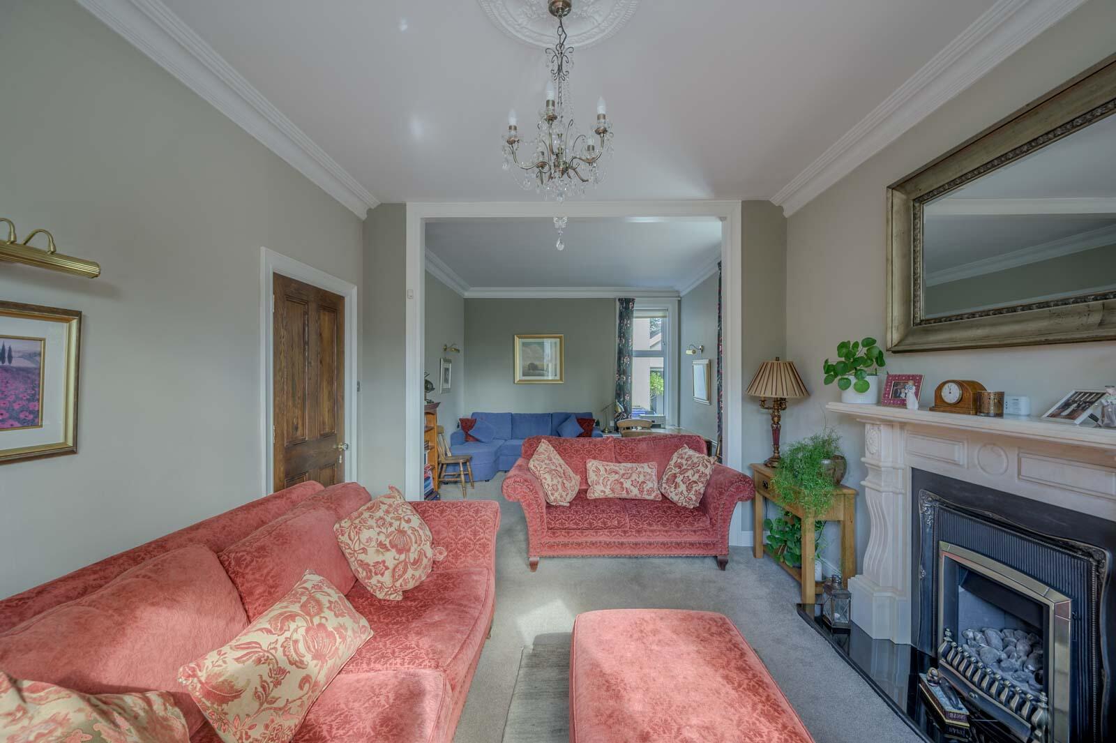 7.24m x 3.66m (23'9 x 12') - With outlook to front into bay window, central gas coal effect fire with cast iron surround, granite hearth, marble frame and mantel, square arch leading through to dining area with outlook to rear and side.