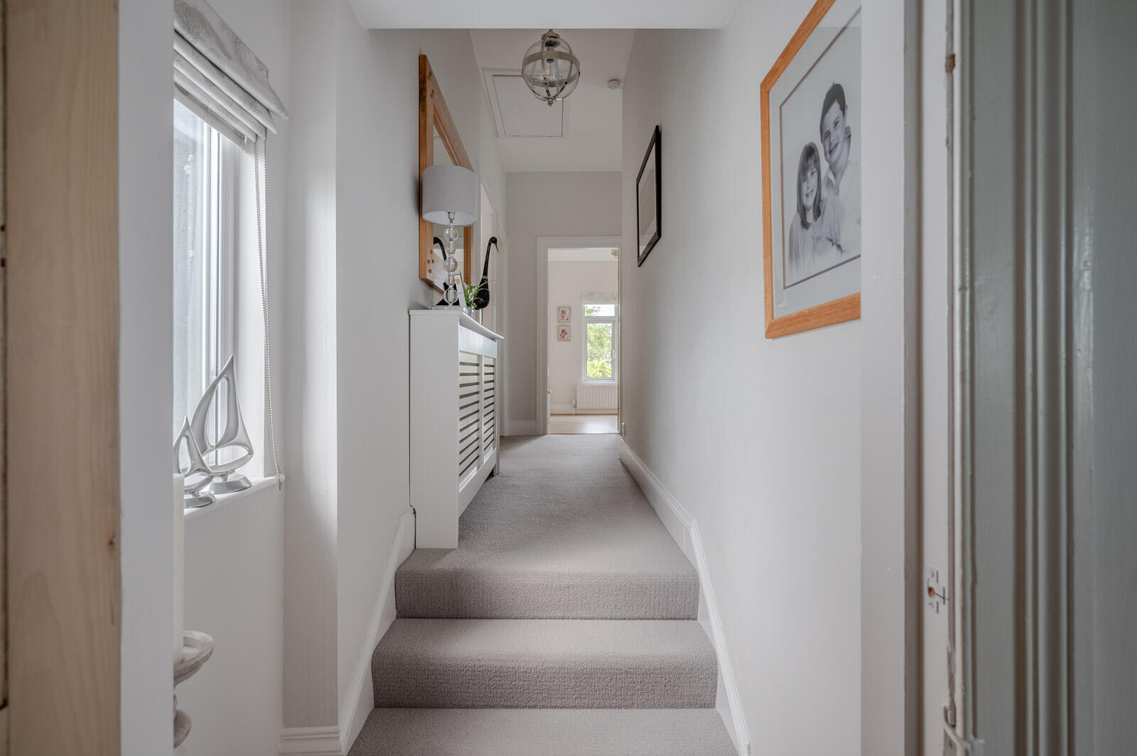 With feature porthole window and original glazed and hardwood front door through to reception hall.