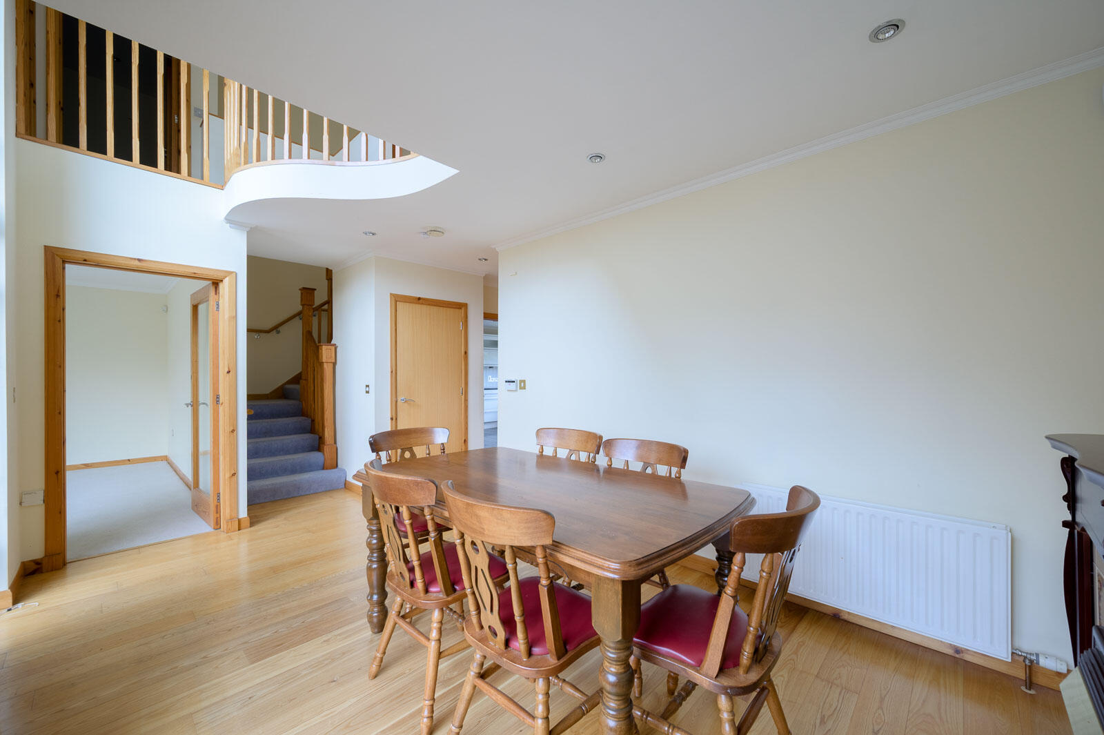 With inset low voltage LED spotlights through to dining hall.
