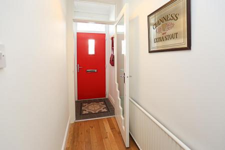 () - With feature ceramic tiled floor, cornice ceiling, glazed and etched inner door, glazed top light.