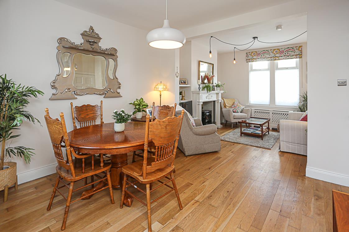 •Through Lounge/Dining Room with Oak Wooden Flooring and Cast Iron Gas Coal Fire