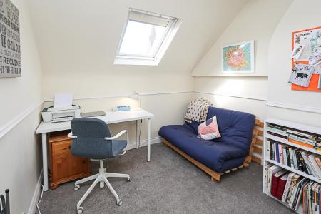 3.28m x 2.74m (10'9 x 9'0) - Velux window, outlook to church spire, access hatch to roof void.