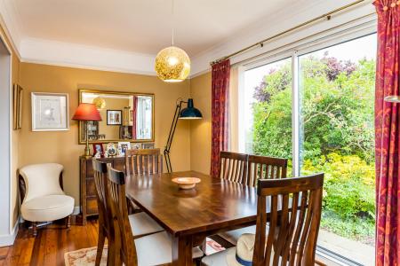 - Dining Room with Solid Pitch Pine Wooden Floor and Sliding Patio Door to Rear Garden