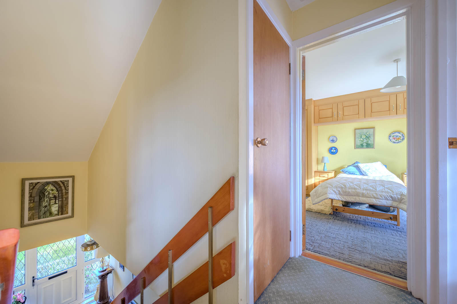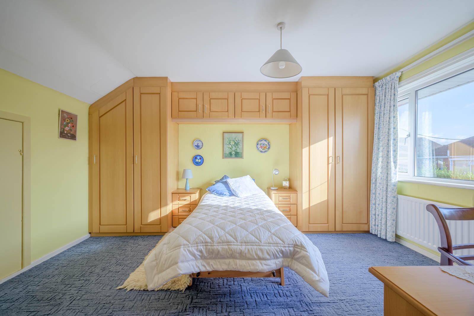 at widest points. Range of built-in furniture to include wardrobe, overhead storage, bedside tables, additional storage in eaves.