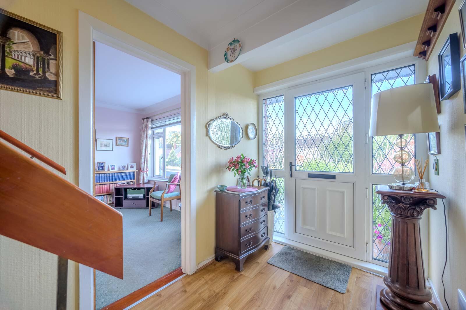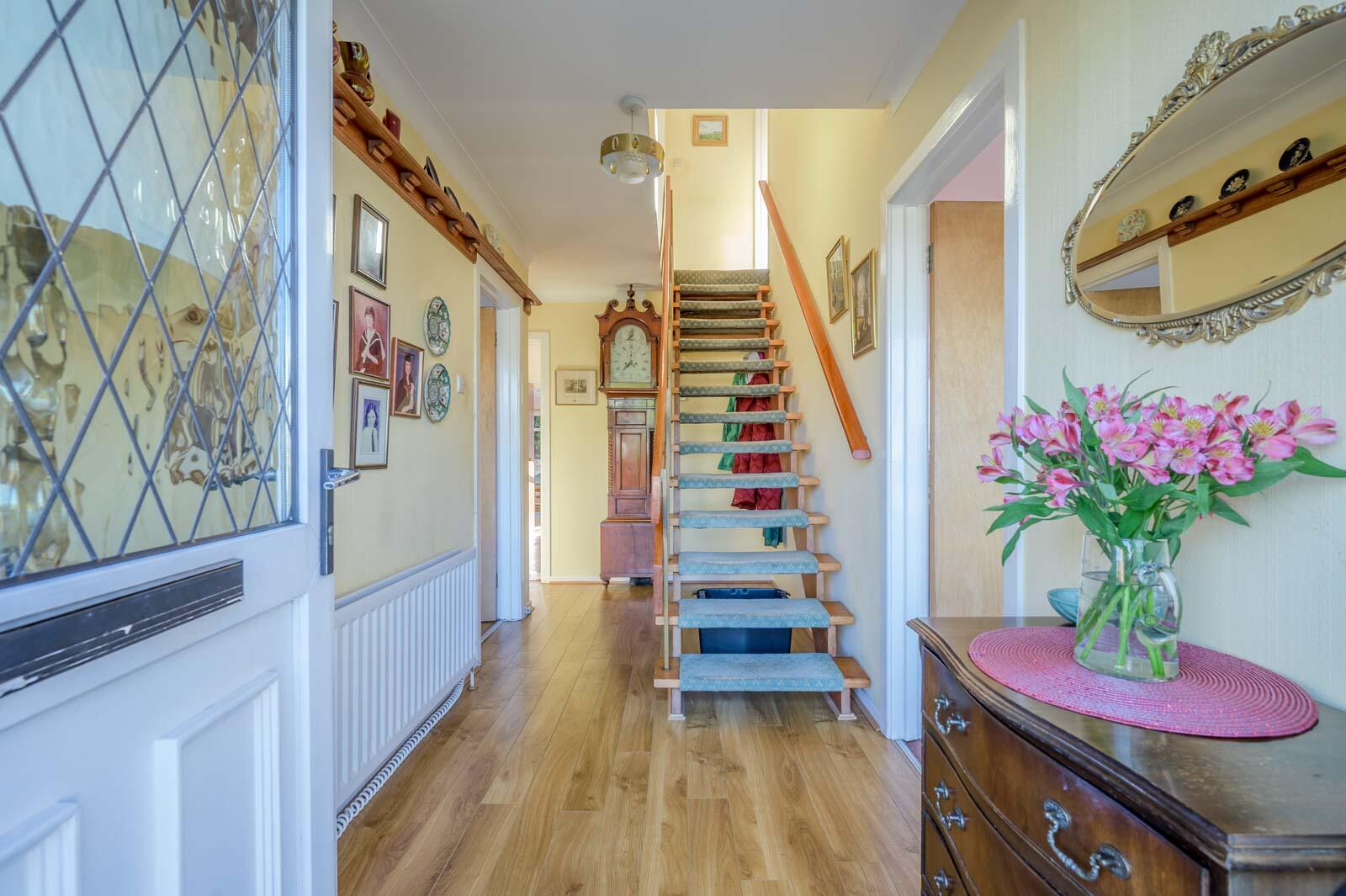 uPVC double glazed front door with uPVC double glazed side panels to reception hall.