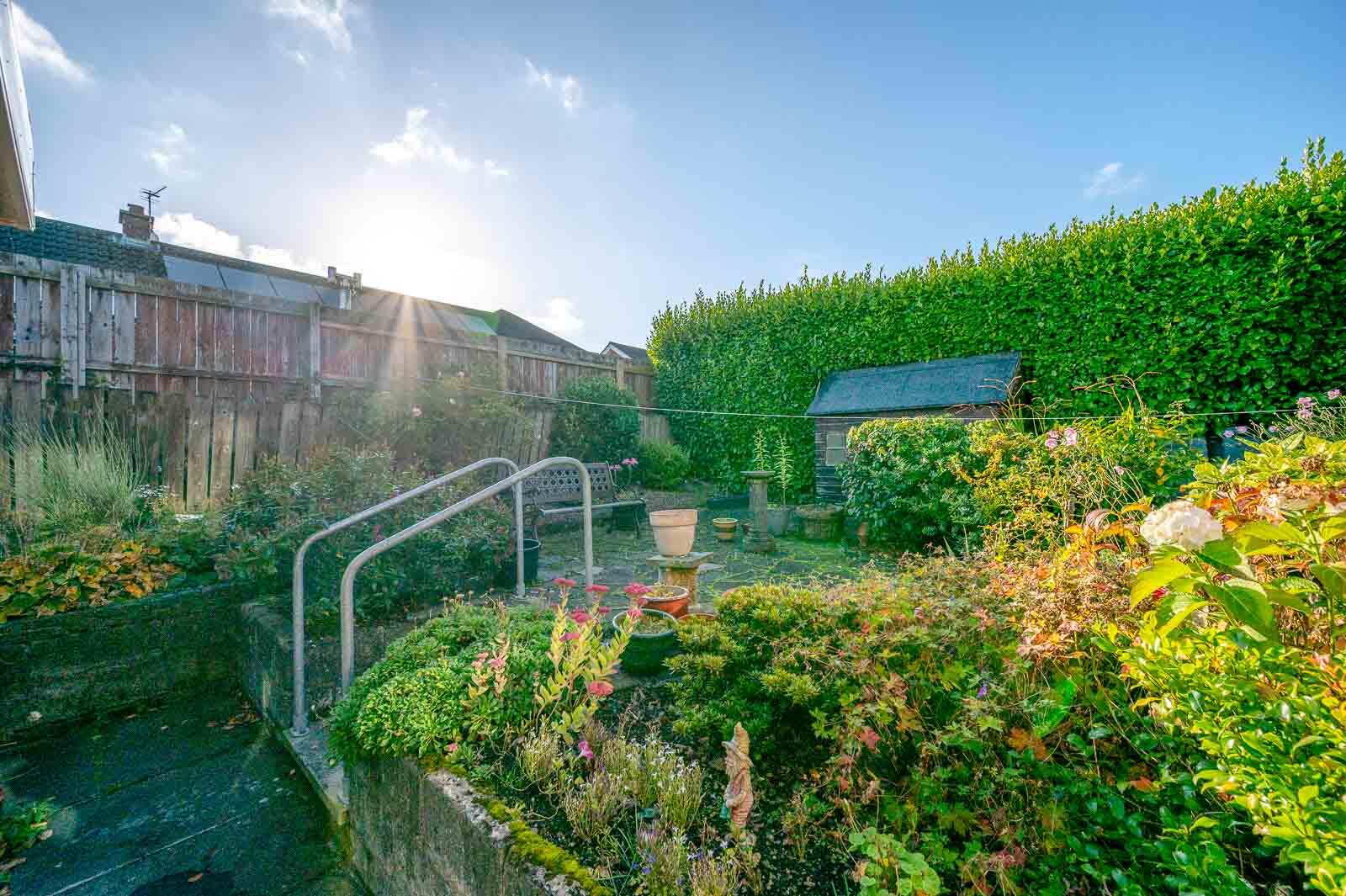 •Fully Enclosed Easily Maintained Rear Landscaped Garden with Flowerbeds in Plants and Shrubs