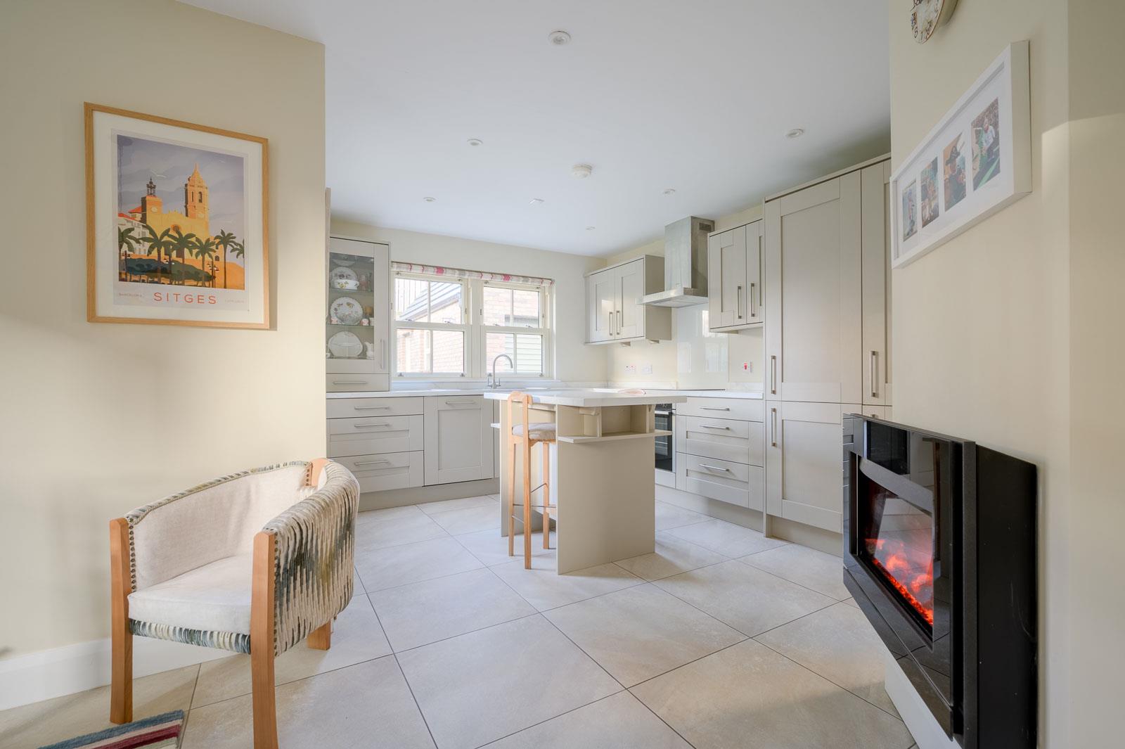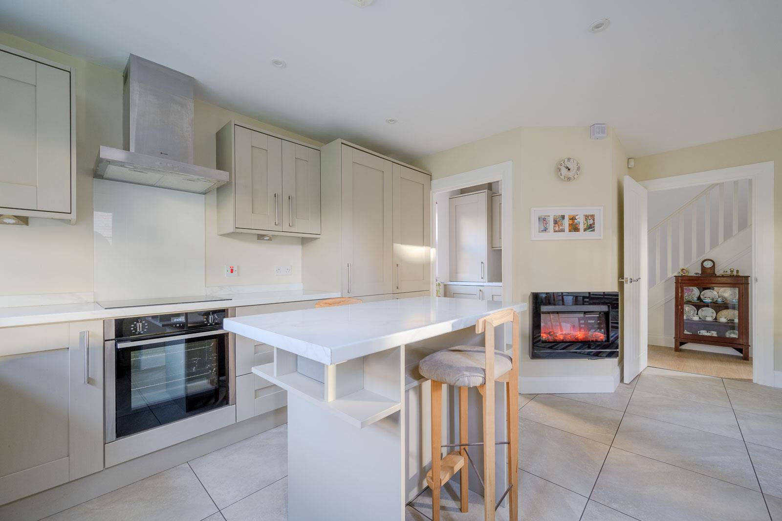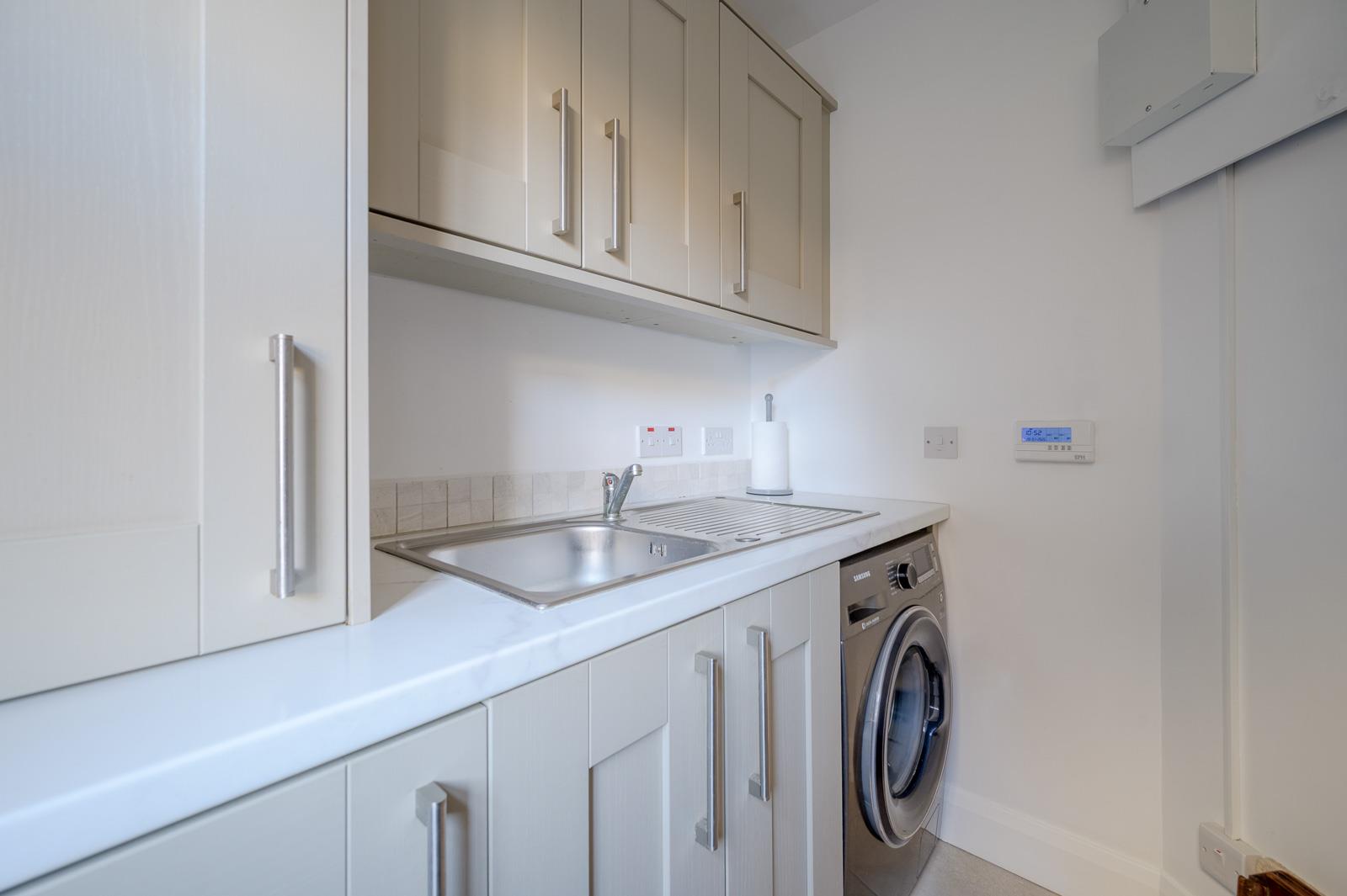 Range of high and low level units, granite effect work surfaces, single bowl single drainer stainless steel sink unit with mixer tap, plumbed for washing machine, gas fired boiler, fully tiled floor.
