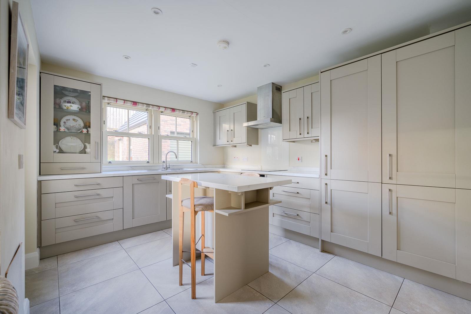 5.49m’1.22m” x 5.18m’3.05m (18’4” x 17’10) - Range of high and low level Shaker style units, granite effect work surfaces, one and a half bowl single drainer stainless steel sink unit with stainless steel mixer tap, integrated Neff oven, integrated four ring induction hob, splashback and extractor fan above, integrated dishwasher, integrated fridge freezer, glass display cabinet, fully tiled floor, uPVC double glazed door to outside.
