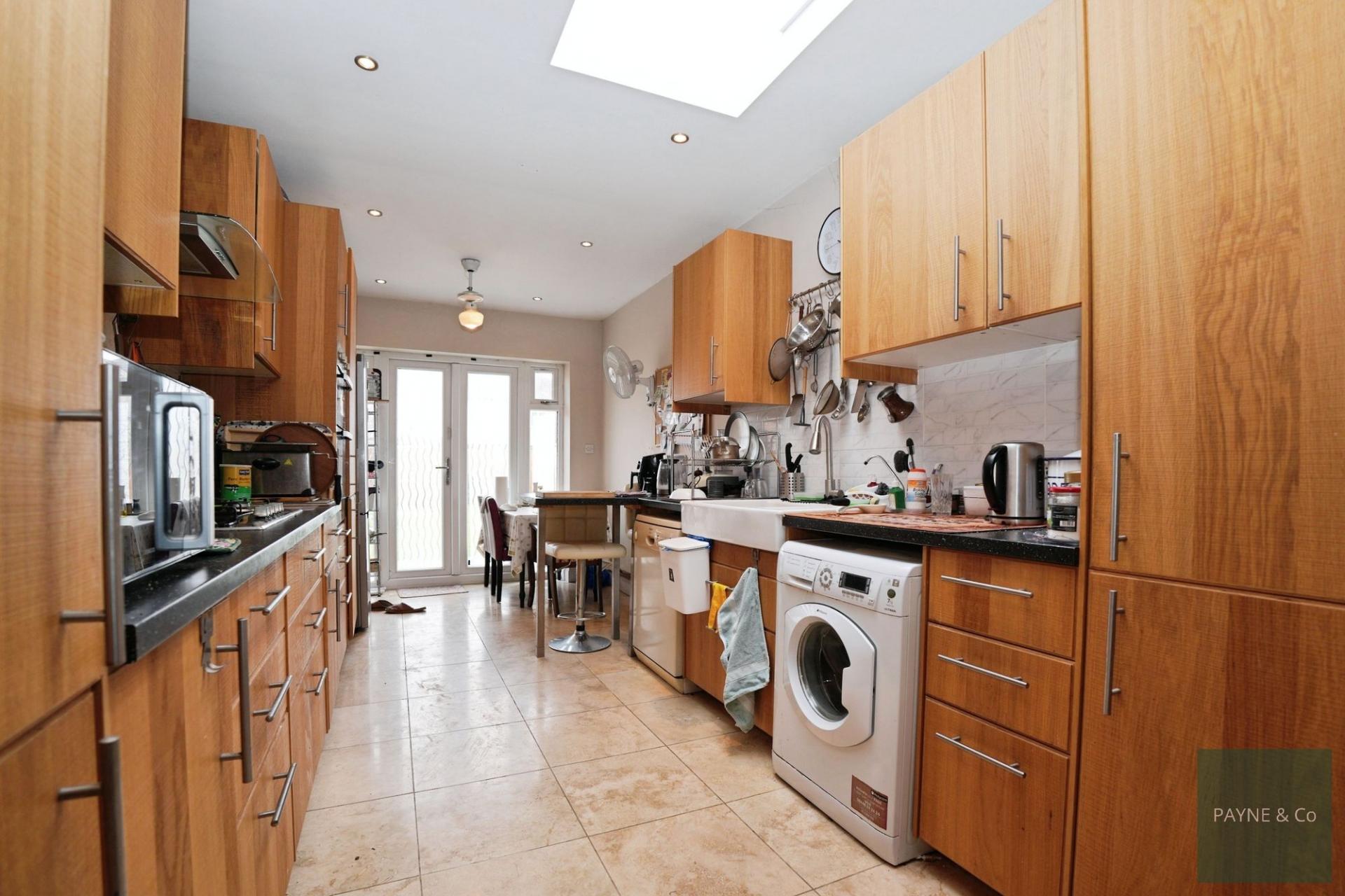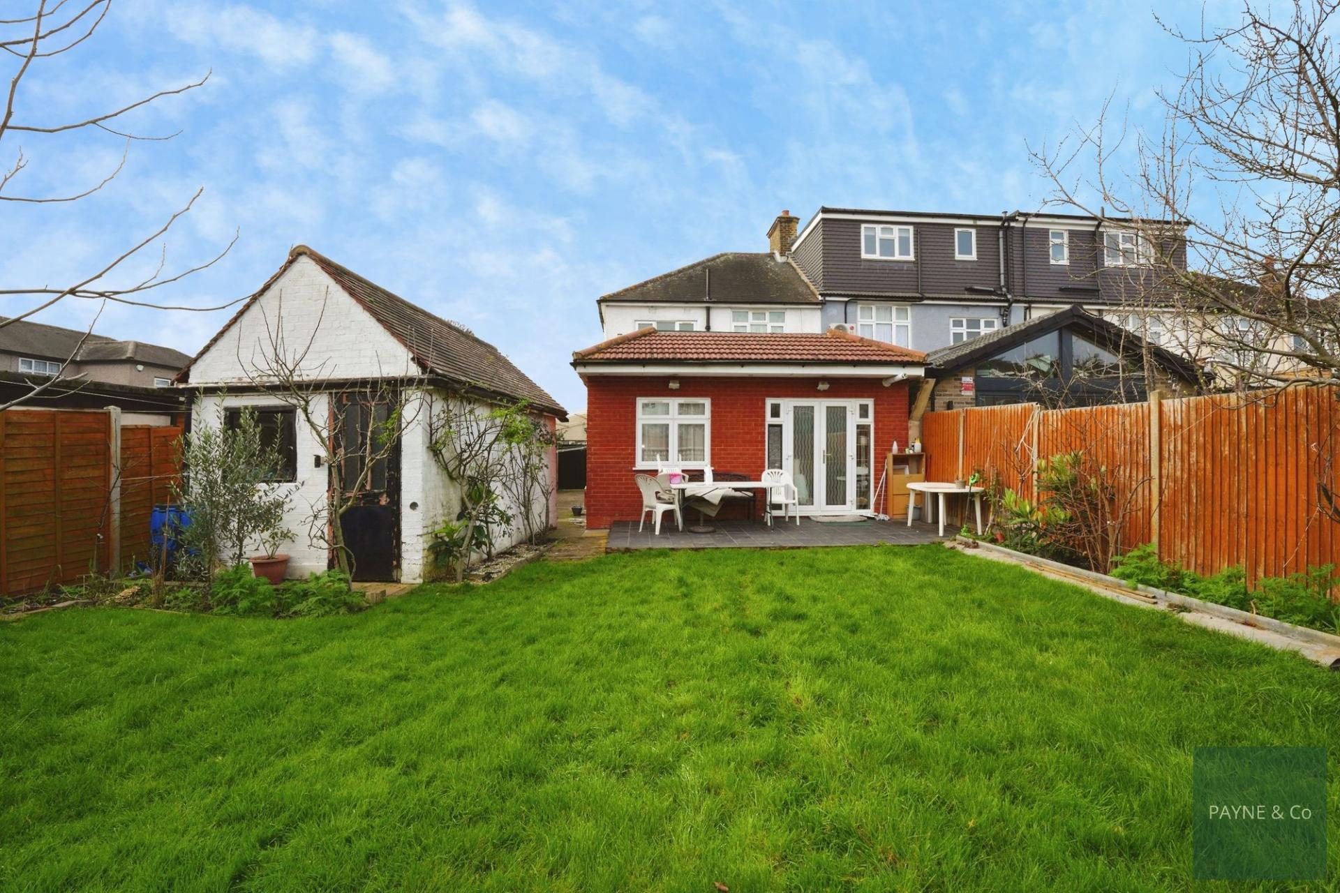 This four-bedroom end of terrace house is for sale in Barking and is presented in good condition. The property offers one through reception room, a kitchen, three bathrooms and off-street parking. There is a detached garage and potential to extend to the side and into the loft, subject to planning permission. The house is situated in a residential area of Barking with access to nearby schools and green spaces, making it suitable for those seeking amenities within reach. Local parks in the wider Barking area provide open space for walking and recreation, while the town centre offers a range of shops, supermarkets and services. Barking station is the main local transport hub, providing Underground, Overground and rail services. From Barking, District and Hammersmith & City line services run into central London, with journey times to the City typically around 20–25 minutes. C2C services also operate towards Fenchurch Street and the Essex coast. Bus routes in the area link surrounding neighbourhoods and connect to Barking station. This property may appeal to buyers looking for a four-bedroom house with parking and scope for future expansion in an established Barking location.