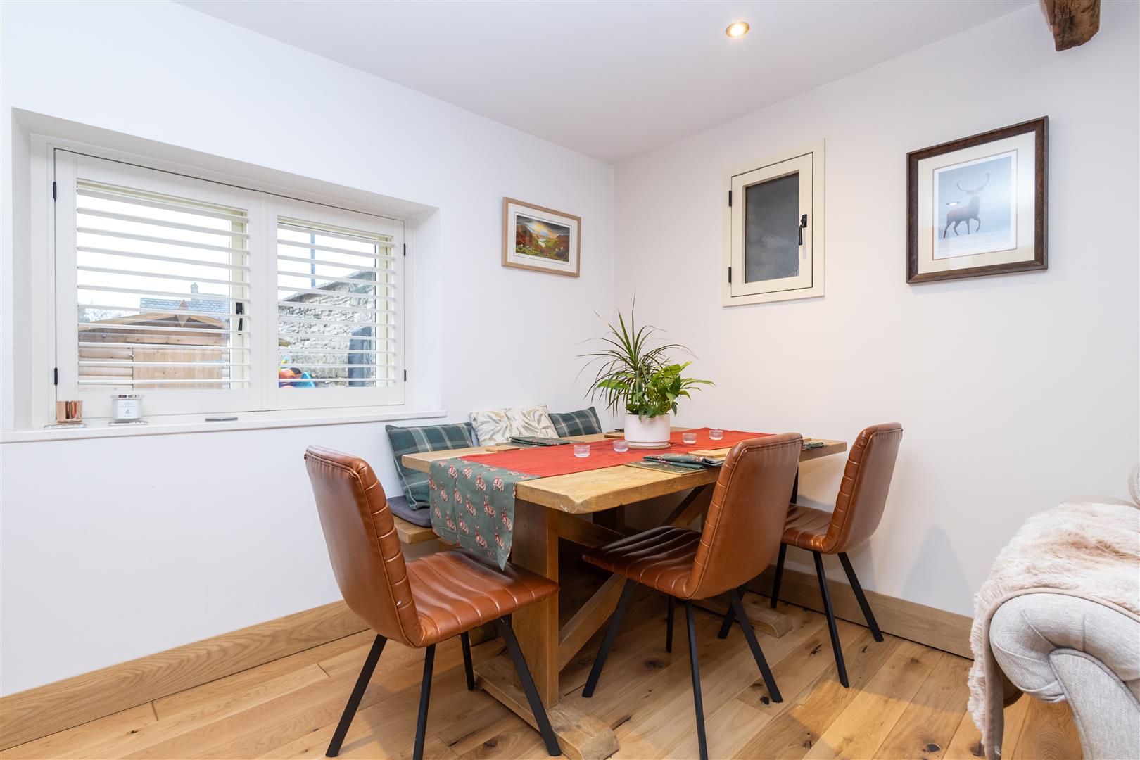 The living room provides a cosy yet elegant retreat, featuring a character multi-fuel fireplace and engineered oak flooring. Two well-appointed bathrooms serve the accommodation, while solid oak internal doors throughout enhance the quality and craftsmanship of the home.