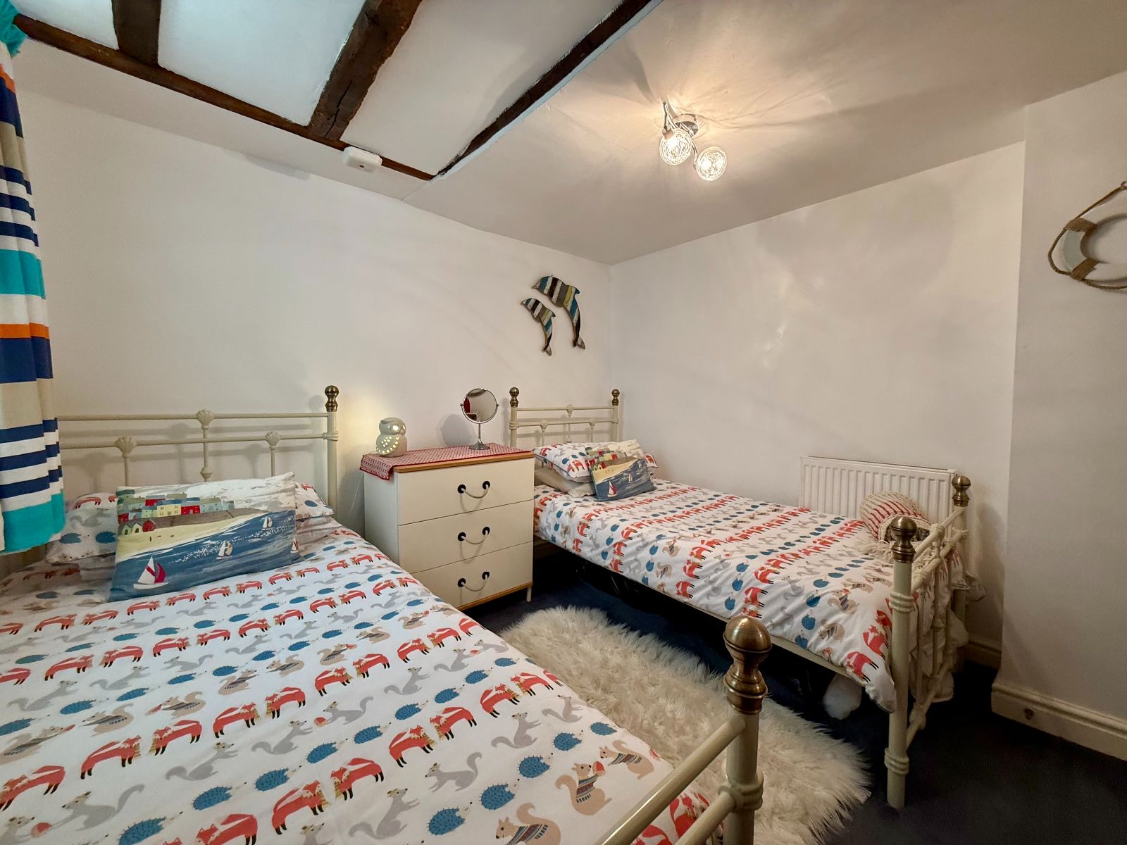 Window to front, exposed beams, exposed feature mantle, radiator, carpet.