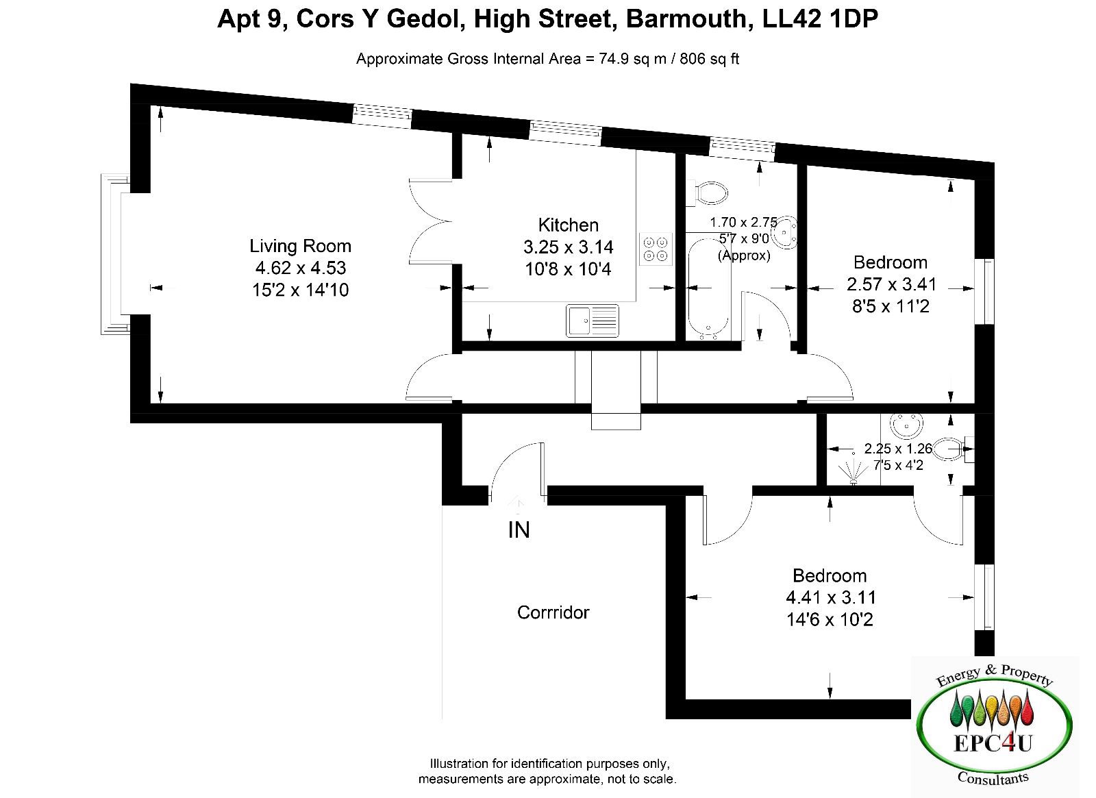 Bedroom 2 w: 2.57m x l: 3.86m (w: 8' 5" x l: 12' 8")