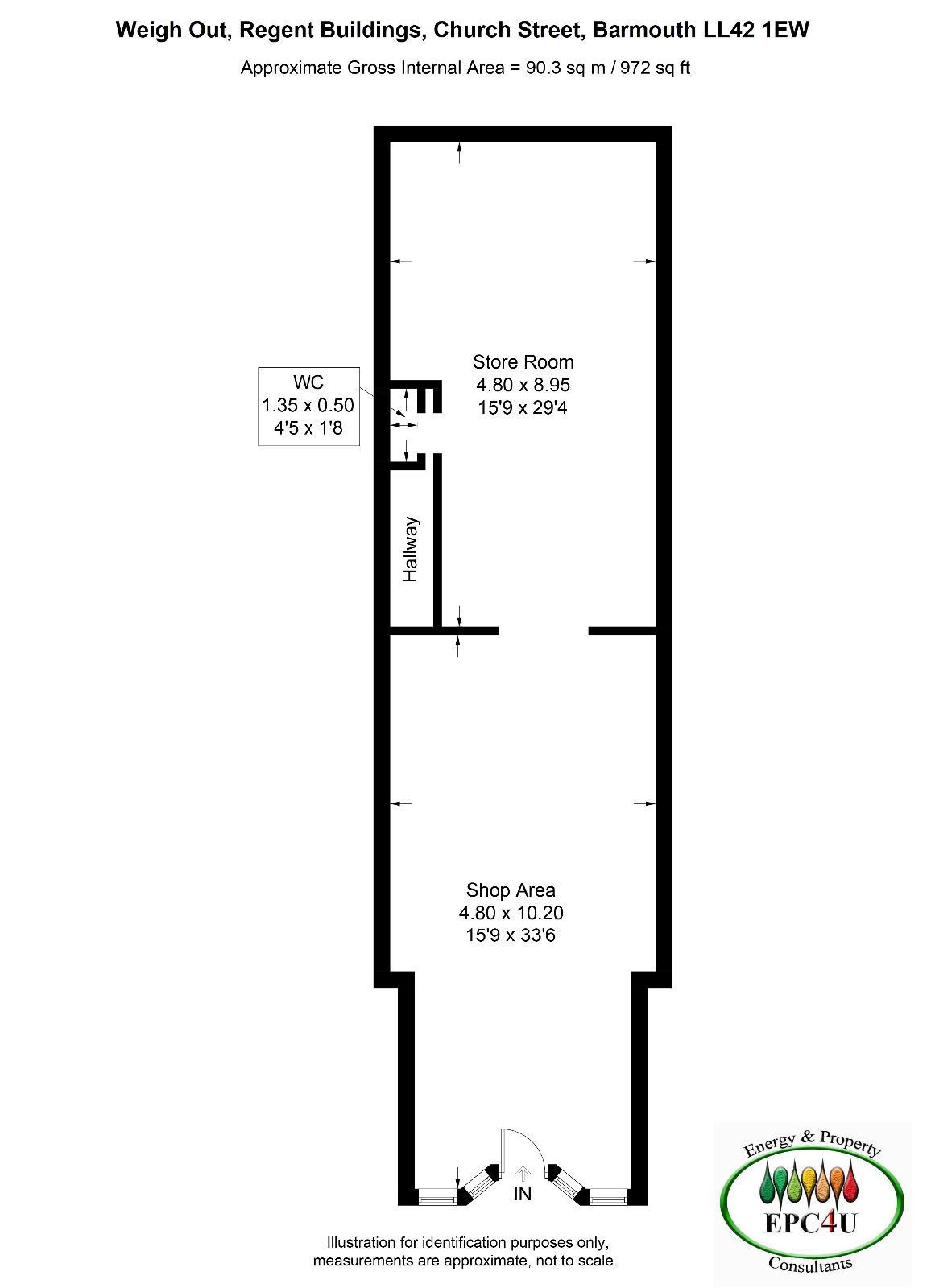 The property consists of a large shop front, with a further 2 storage and office areas to the rear together with a W.C.