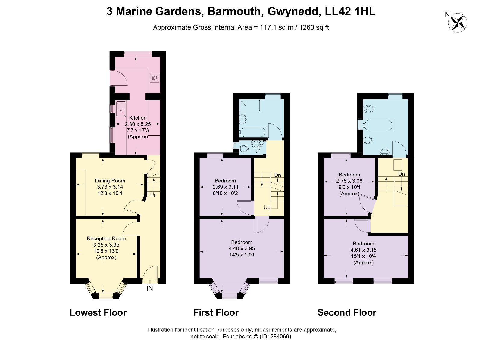 The accommodation briefly comprises: entrance hallway, sitting room, dining room, and kitchen. On the first floor there is a shower room, separate WC, and two bedrooms. The second floor offers a further two bedrooms and a bathroom.