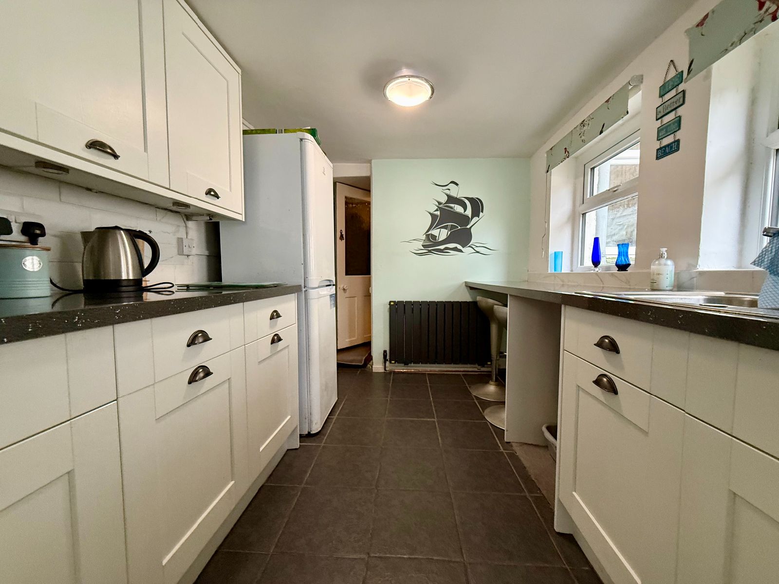 3 Marine Gardens is a four-bedroom mid-terraced townhouse of traditional construction beneath a slate roof, located on the outskirts of the town and conveniently positioned close to local amenities, the primary school, and the beach.