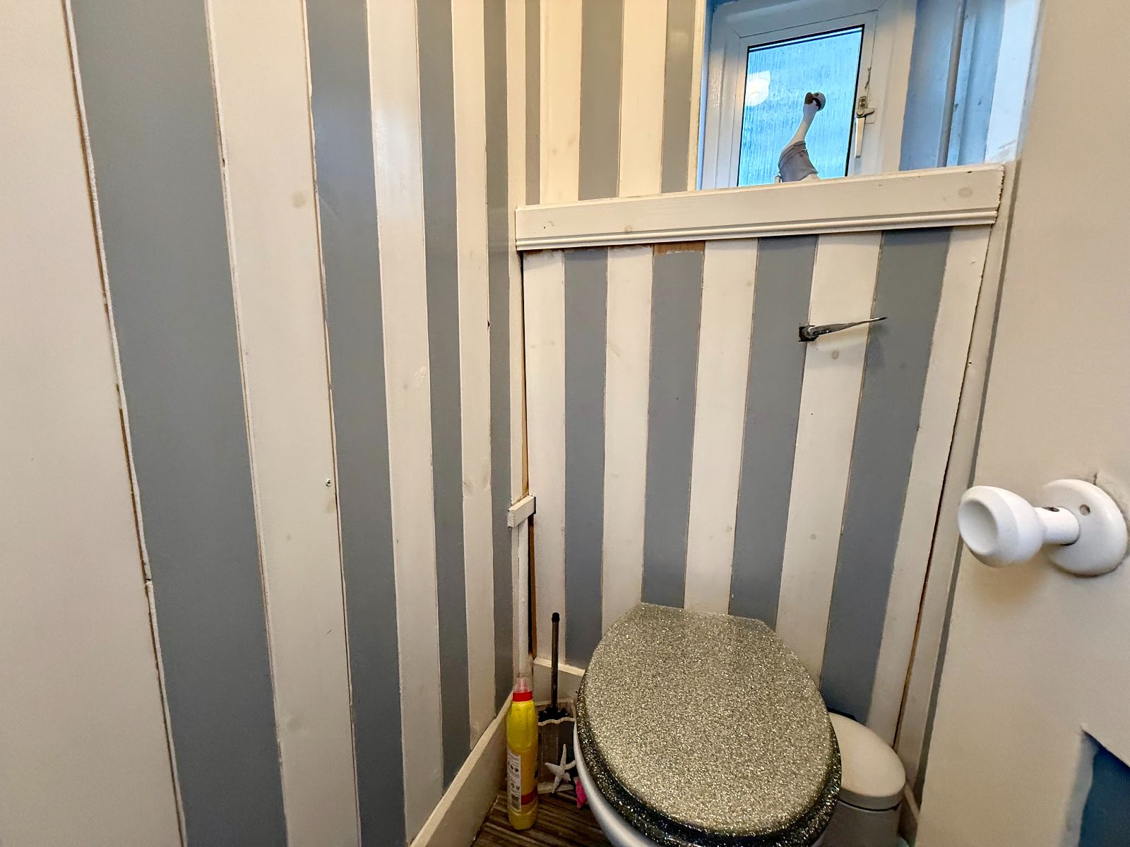 Window to side, low level W.C., wash hand basin, cushion floor.