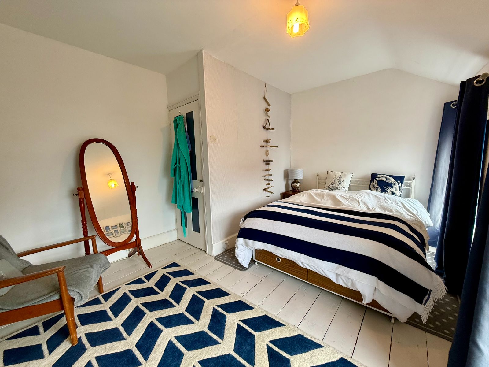 Two windows to front with sea views, radiator, exposed floorboards.