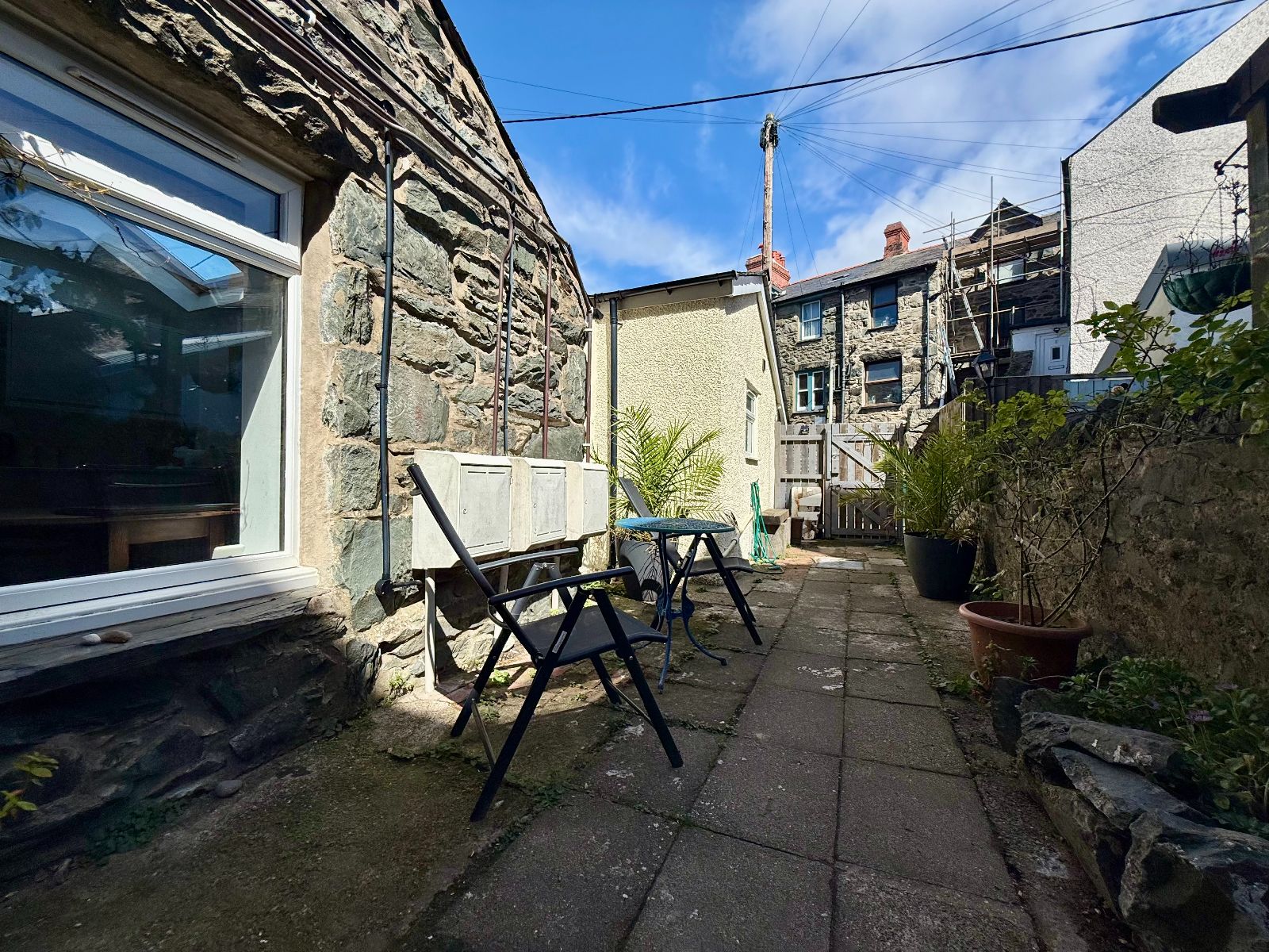 To the side of the property there is an enclosed courtyard garden, providing a pleasant seating area. Access from the rear lane is via a lockable gate with stone boundary wall.