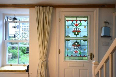 The cottage is full of charm and character and has some wonderful bespoke details to include exposed stone walls, unusual fireplace mantle, shutters on the patio doors and windows and a unique stained glass front door. There is a well designed fitted kitchen with underfloor heating and a cosy multi-fuel burner in the living room. Throughout the cottage there are up to date electrics and central heating.