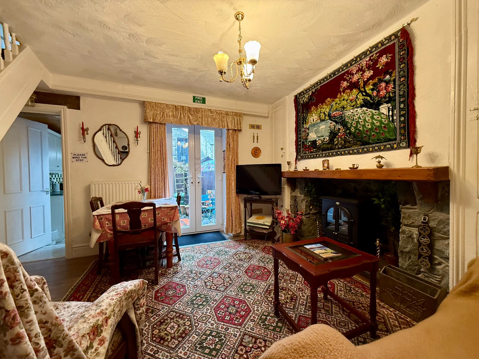 The property retains many original features, including an exposed stone chimney breast, period fireplaces, and elegant staircases, while also benefiting from gas central heating and uPVC double glazing for year-round comfort.