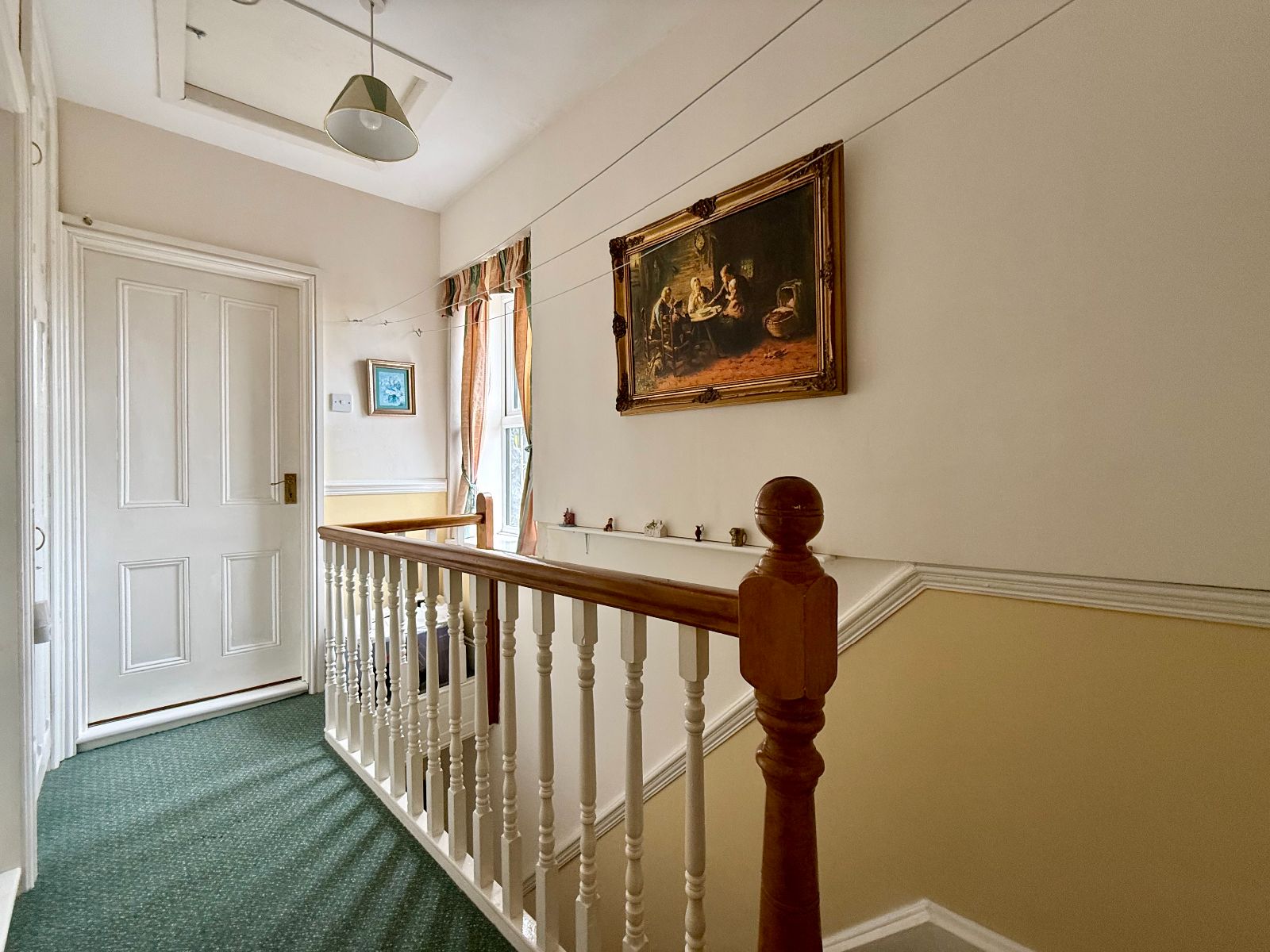 Window to side, access to roof space, linen cupboard, dado rail, carpet.