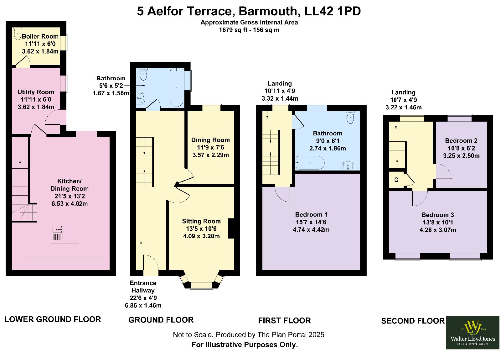 Lower Ground Floor: Spacious kitchen/dining area, utility room, and boiler room with WC.