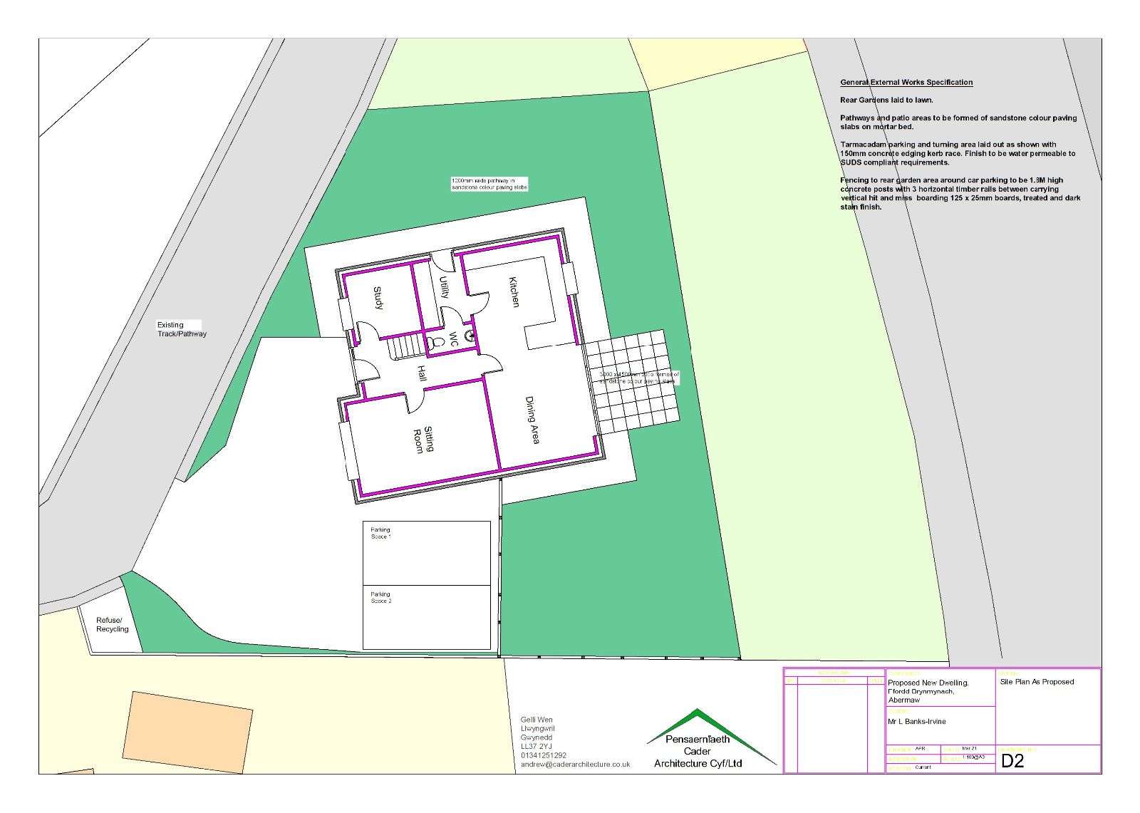 A rare opportunity to purchase a building plot with planning permission for a two storey 3 bedroom family home with private parking in a much sought after location in Barmouth.