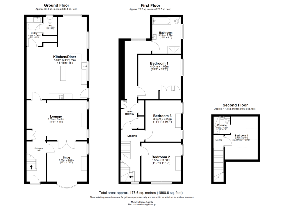 - Three large double bedrooms plus second floor guest suite with en-suite