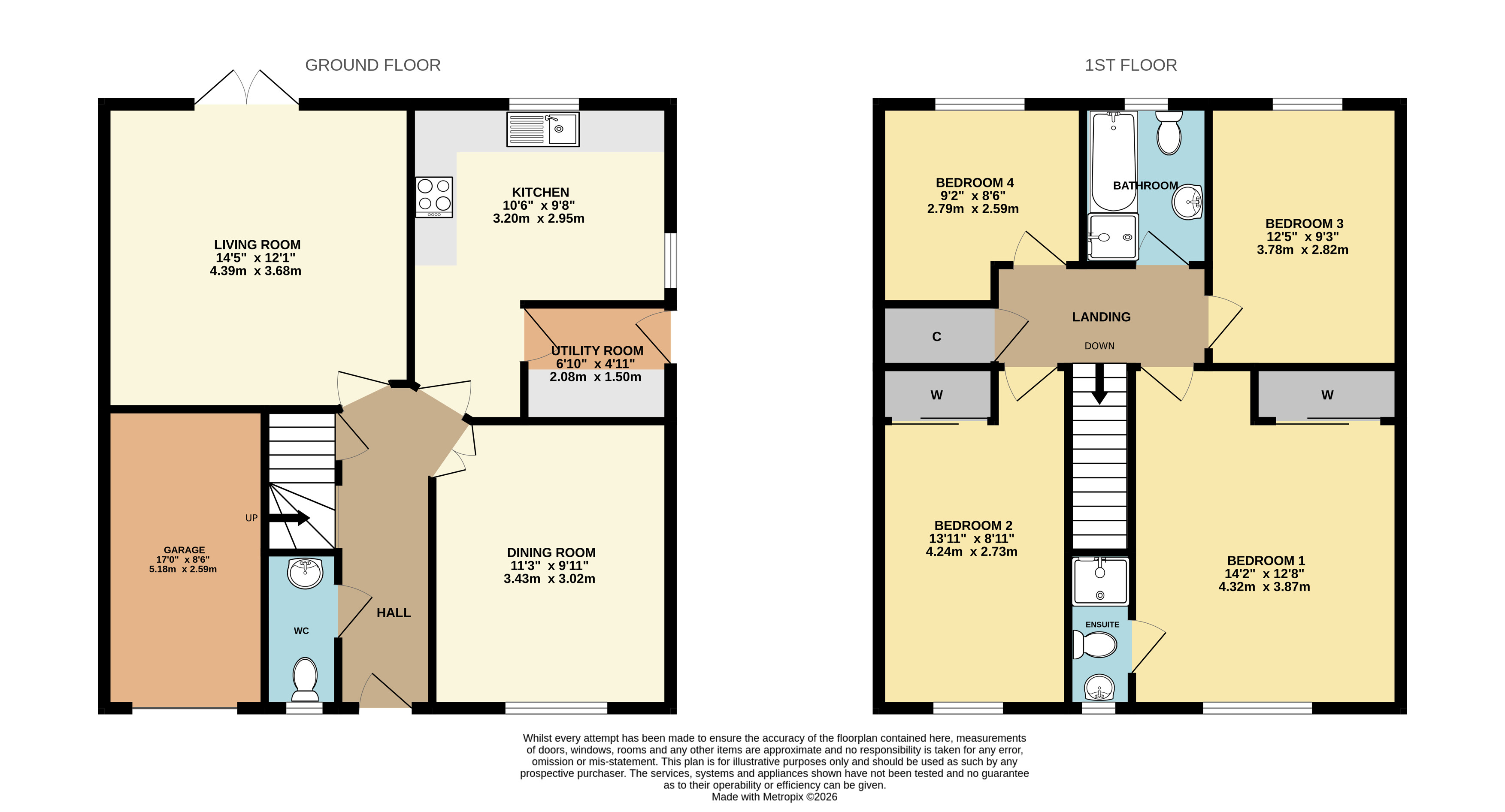 The kitchen is modern and contemporary in style, finished in excellent order and fitted with a range of quality fixtures and fittings, including a built-in oven, gas hob and integrated dishwasher. Just off the kitchen is a separate utility room, providing additional storage and workspace, as well as direct access to the side of the property, adding to the home’s overall practicality.
