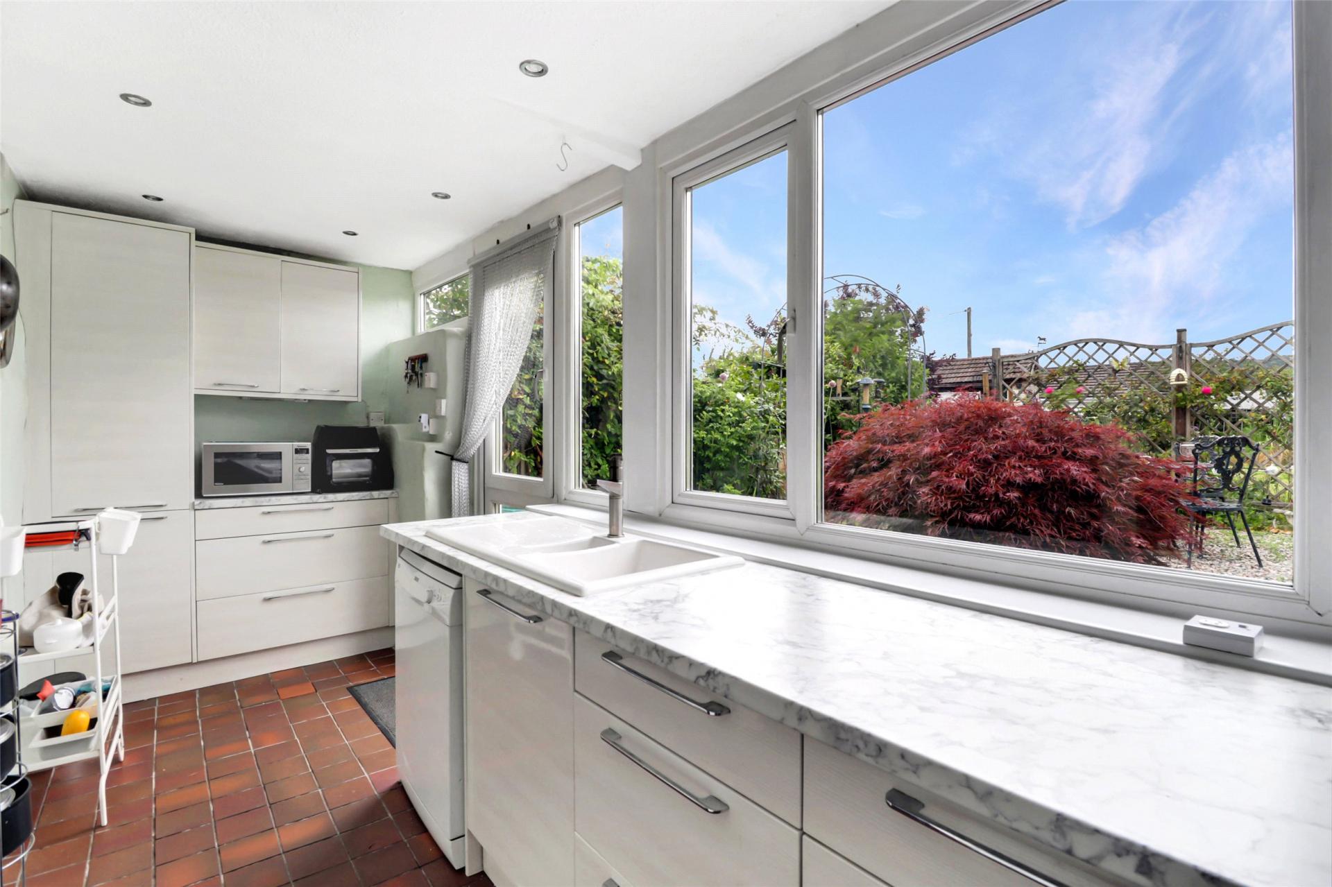 Stepping inside, you are welcomed by two generously sized reception rooms—one currently arranged as a formal dining area, while the other serves as a cosy lounge complete with a working log burner, perfect for relaxing evenings. To the rear of the property lies a well-appointed fitted kitchen, enjoying pleasant views over the expansive rear garden. A convenient downstairs bathroom completes the ground floor accommodation.