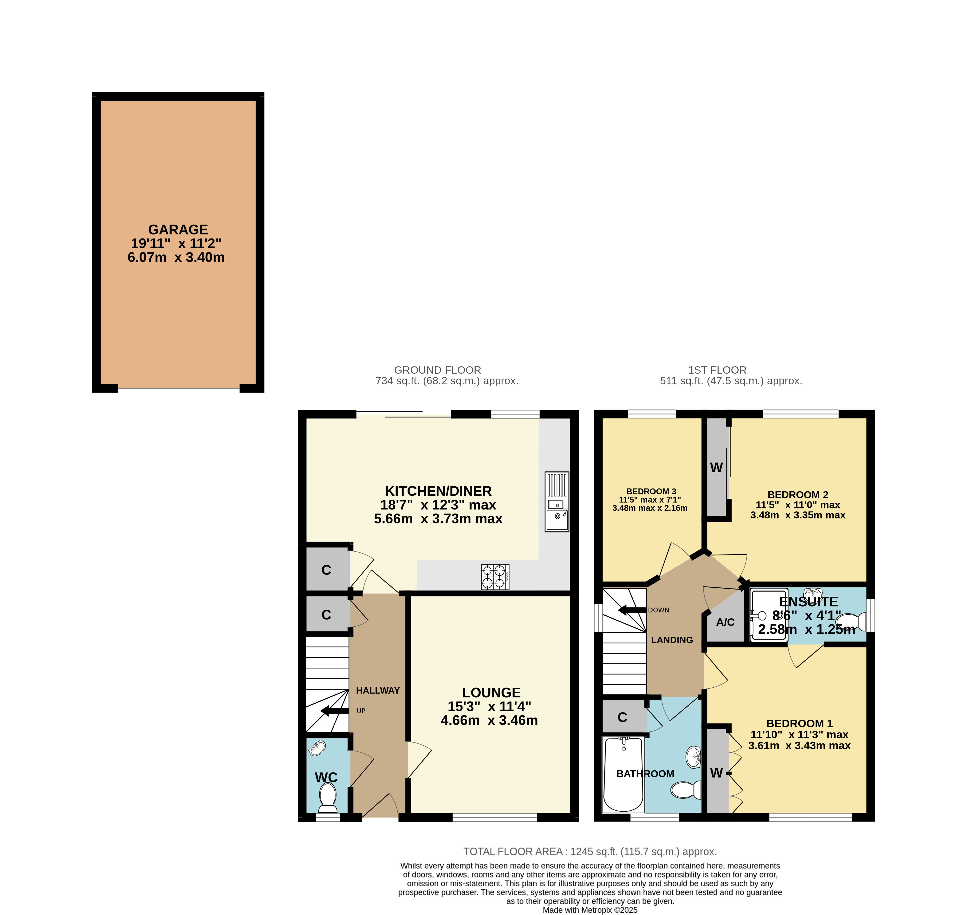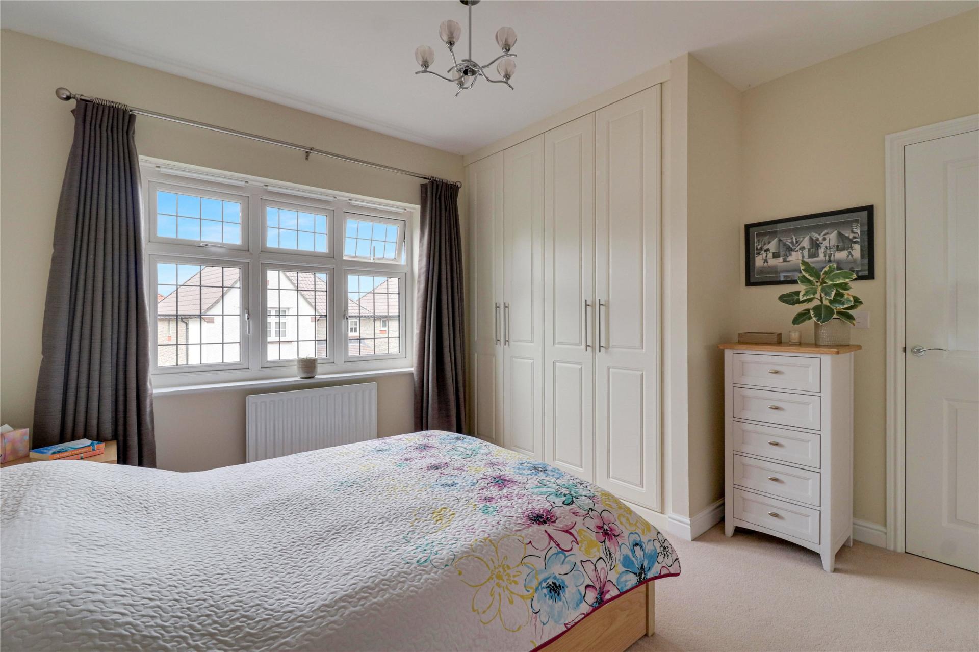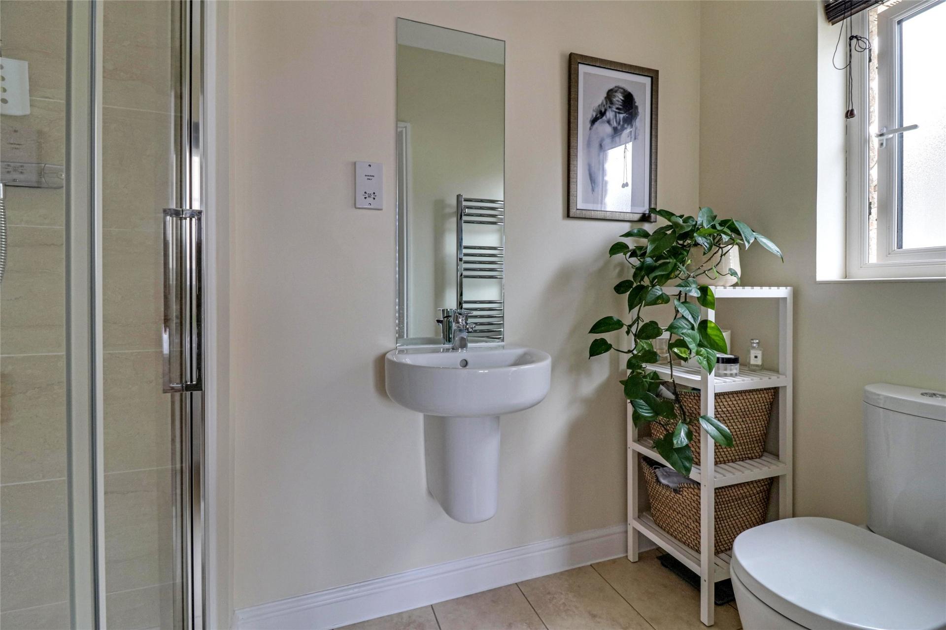 Upstairs, the master bedroom benefits from built-in wardrobes and a modern en-suite shower room. There is a second double bedroom, also with built-in wardrobes, and a generous third bedroom — all served by a contemporary family bathroom.
